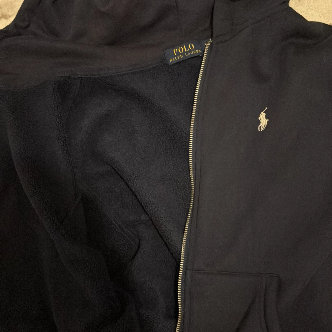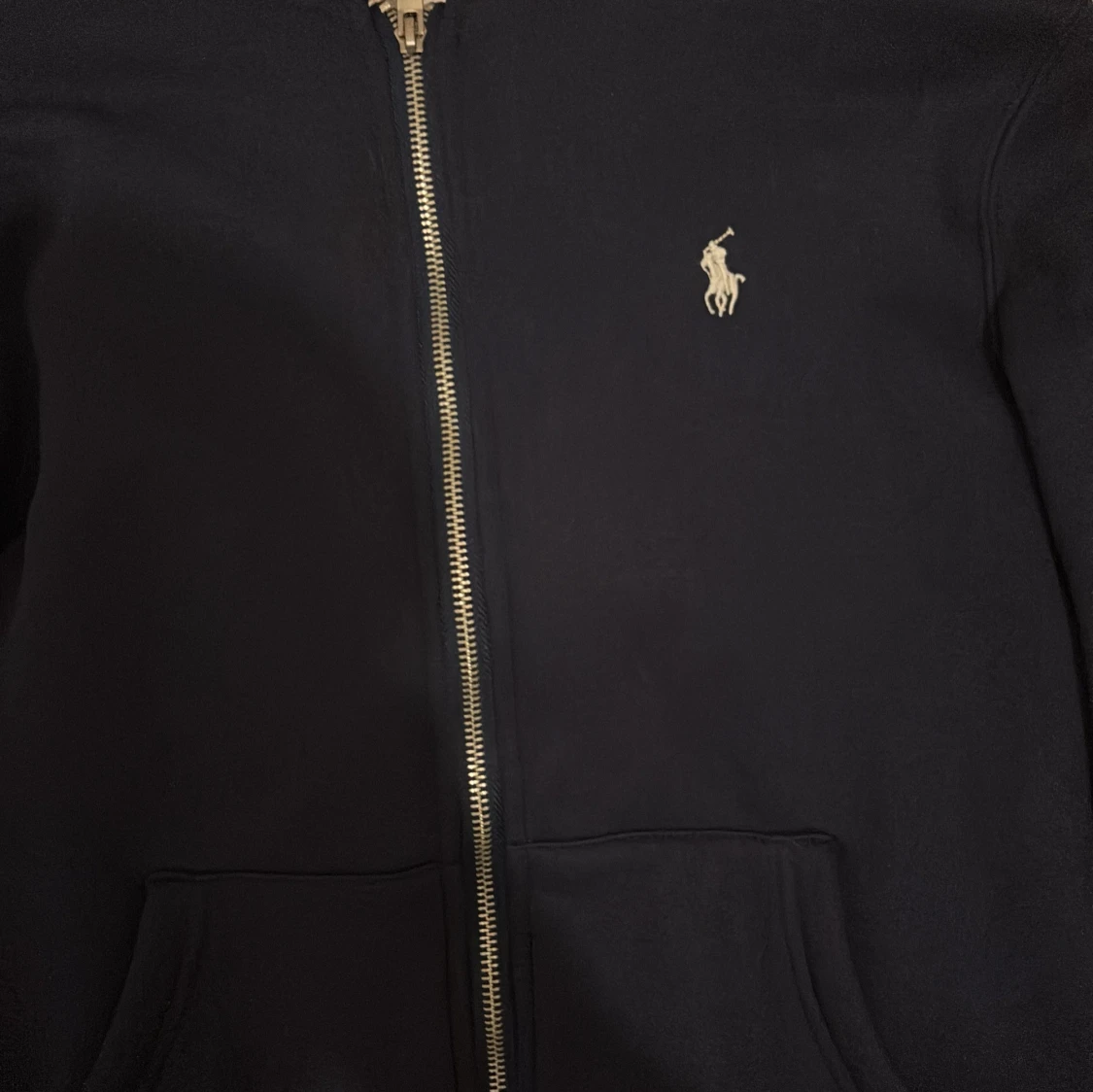 Mörkblå hoodie från Polo Ralph Lauren med dragkedja, huva och fickor framtill. Klassisk broderad logga på bröstet och mjukt fleecefoder på insidan. Perfekt för dig som gillar stilrena och bekväma plagg. Helt ny säljs endast för 1200kr