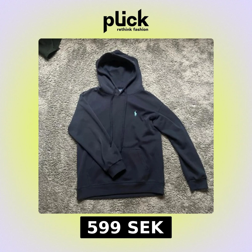 Säljer en mörkblå hoodie från Polo Ralph Lauren med klassisk huva och känguruficka. Tröjan har en broderad turkos logga på bröstet och långa ärmar. Perfekt för chill dagar eller när du vill ha en clean streetstyle.