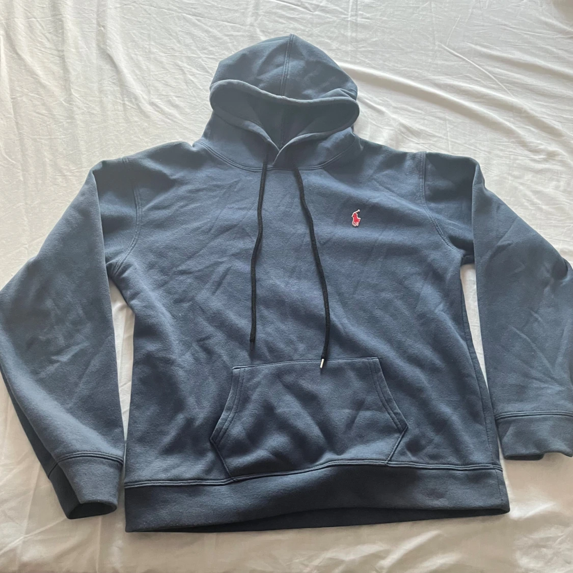 Snygg mörkblå hoodie från Polo Ralph Lauren med klassisk röd broderad logga på bröstet. Tröjan har huva med svarta snören, stor magficka och långa ärmar. Perfekt för chill dagar och enkel att matcha med jeans eller joggers.