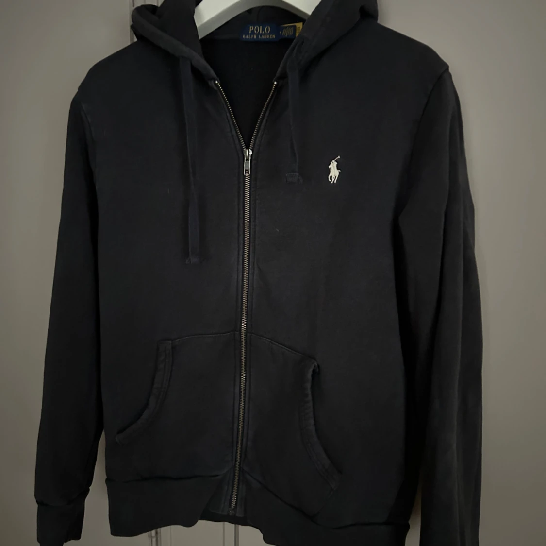 Säljer en stilren mörkblå hoodie från Polo Ralph Lauren med dragkedja och det klassiska logotypbroderiet på bröstet. Tröjan har långa ärmar och en praktisk huva med dragsko. Perfekt för en avslappnad look. Skick 8/10 men inga defekter. Bara höra av er om frågor
