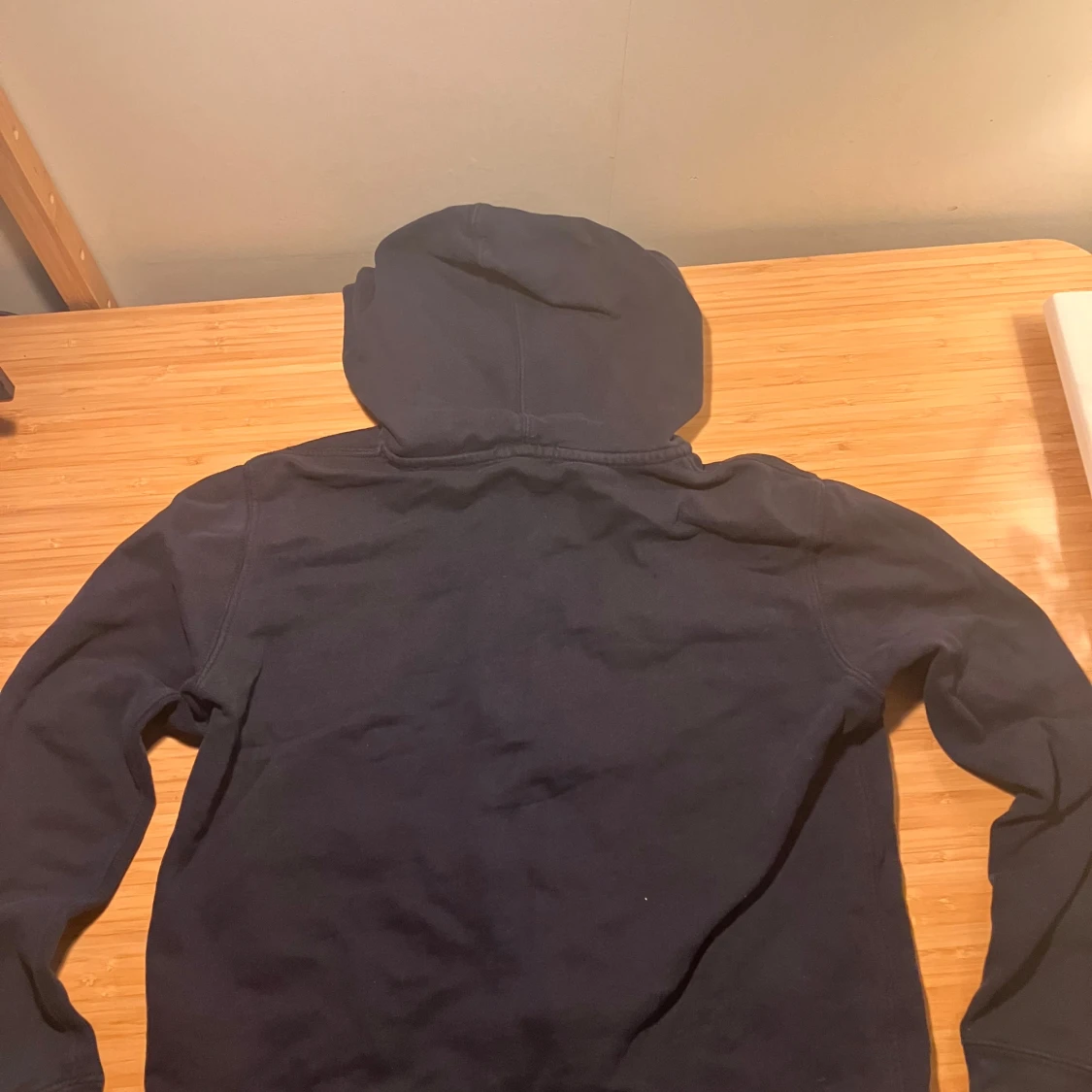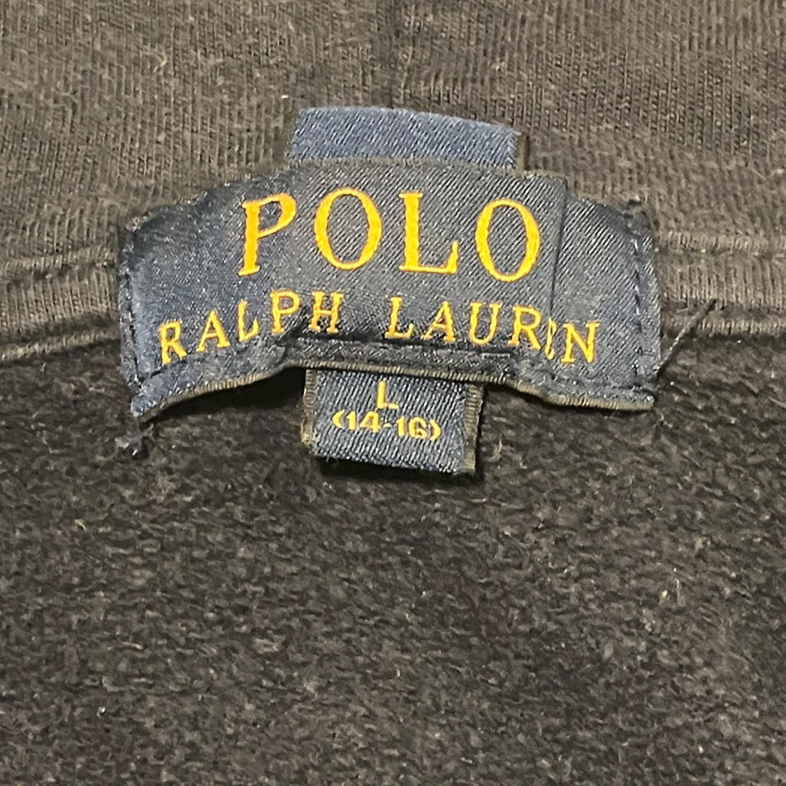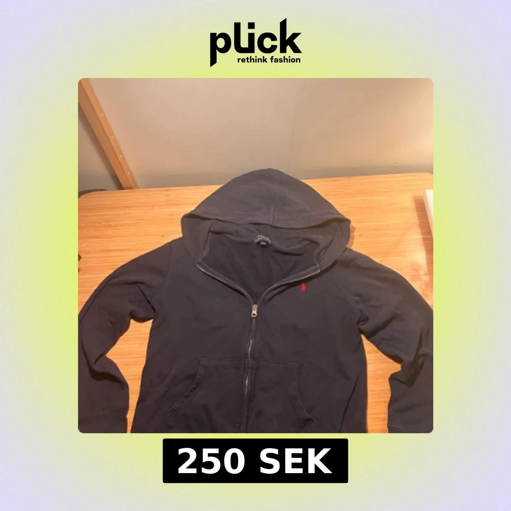Säljer en snygg mörkblå hoodie från Polo Ralph Lauren med dragkedja och den klassiska röda loggan broderad på bröstet. Perfekt för en avslappnad stil med en skön huva och långa ärmar. Passar bra till både vardag och helger det är storlek 165