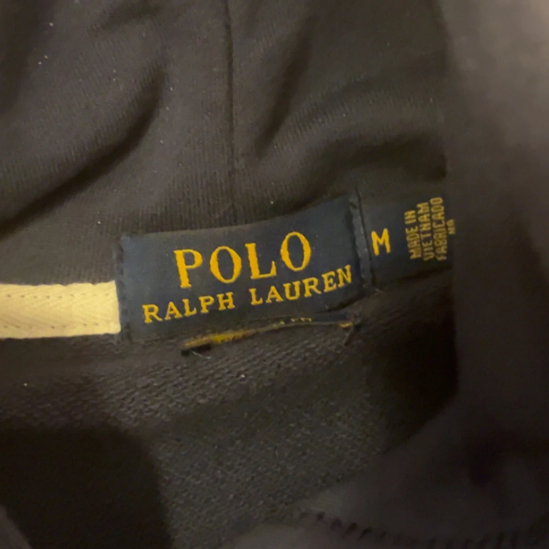 Säljer mörkblå zip hoodie i nyskick från Ralph Lauren i storlek M. Tröjan sitter som S. är i nytt skick !!! Påse med tags medföljer.