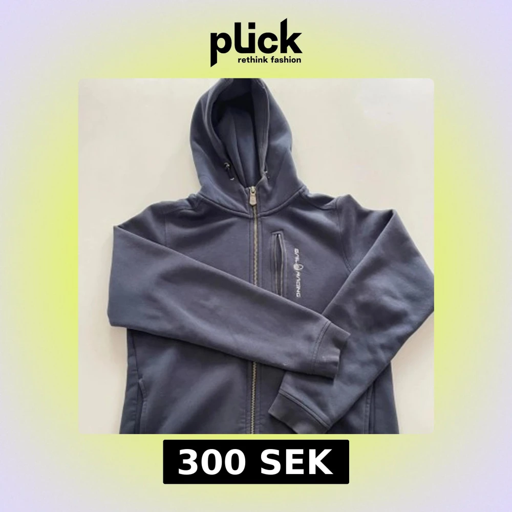 Mörkblå hoodie från Sail Racing med dragkedja. Inga skador
