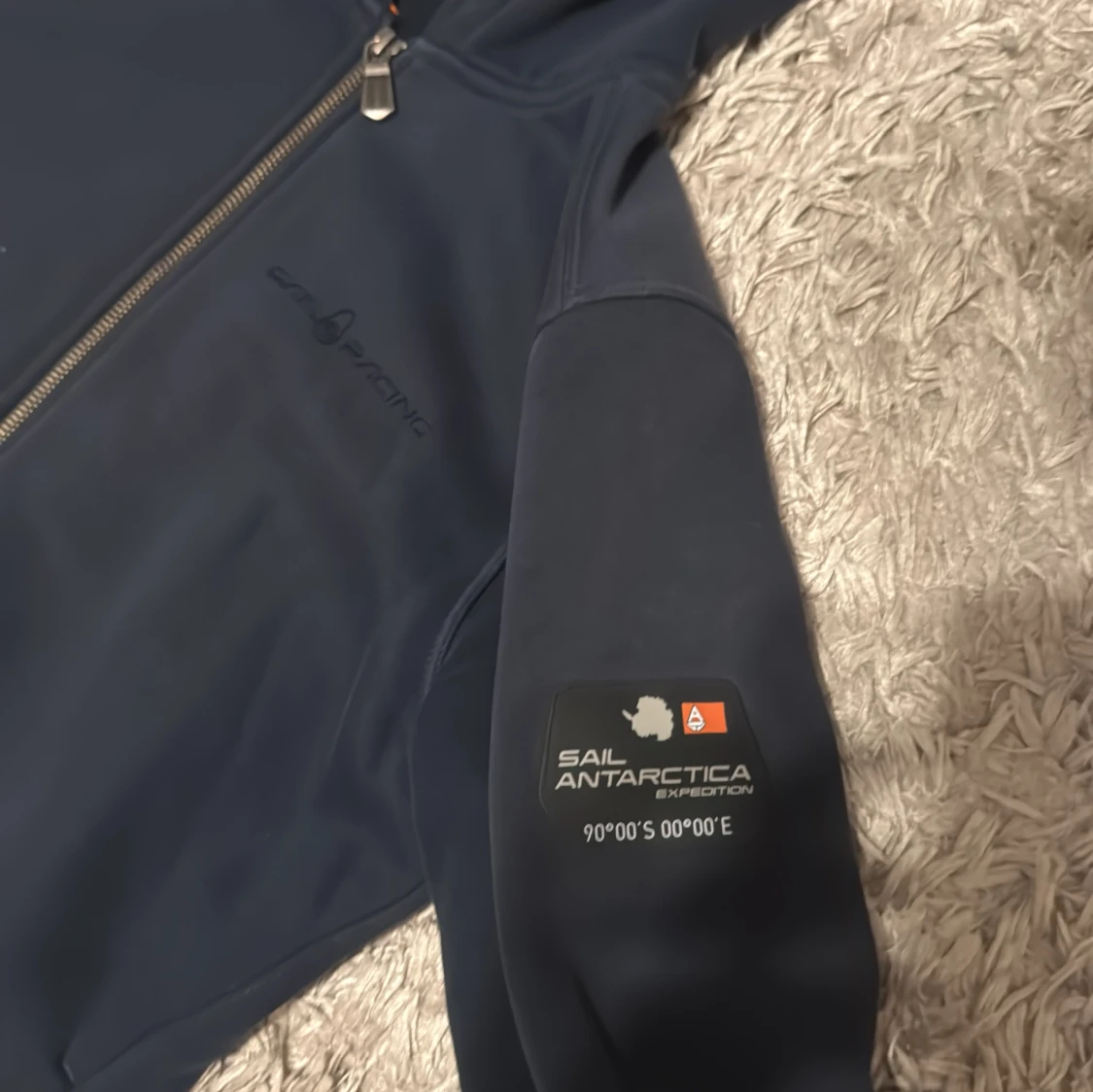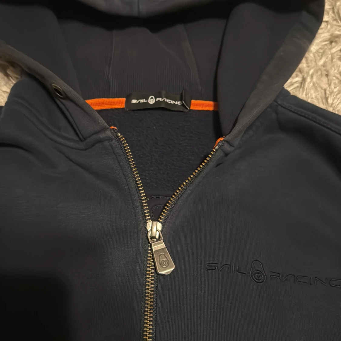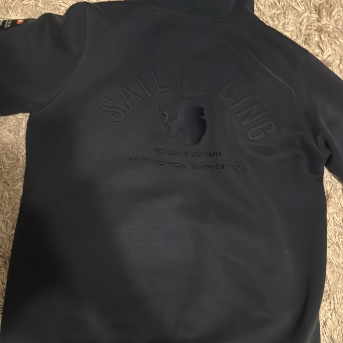 Säljer en snygg mörkblå hoodie från Sail Racing i mycket bra skick. Den har en dragkedja framtill och en cool logga på ärmen. Perfekt för höst och vår när du vill hålla dig varm och stilren. Passar både till vardags och lite mer avslappnade tillfällen.