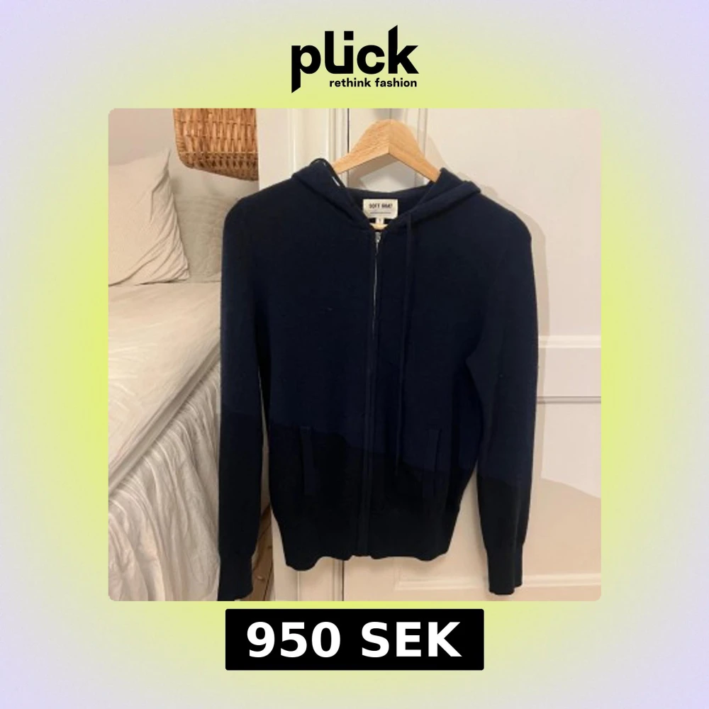 Mysig mörkblå hoodie från Soft Goat i 100% kashmir. Tröjan har dragkedja framtill, huva med snörning och två fickor. Långärmad och super snygg!!