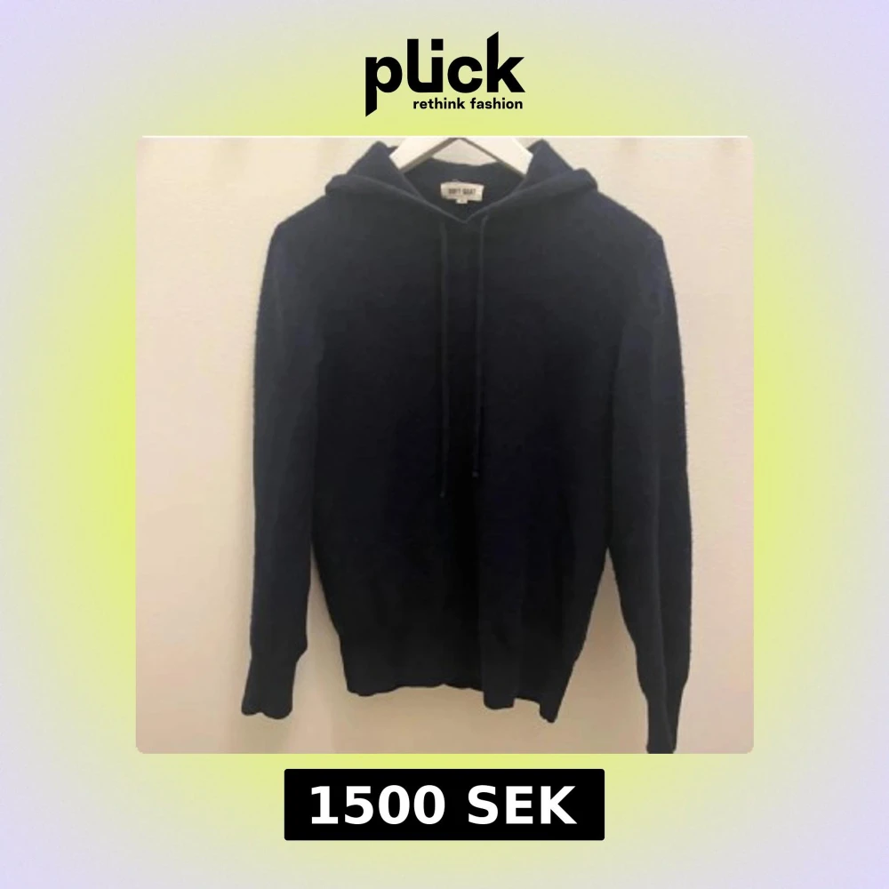 mörkbla hoodie från soft goat. 100% Kashmir. Storlek S