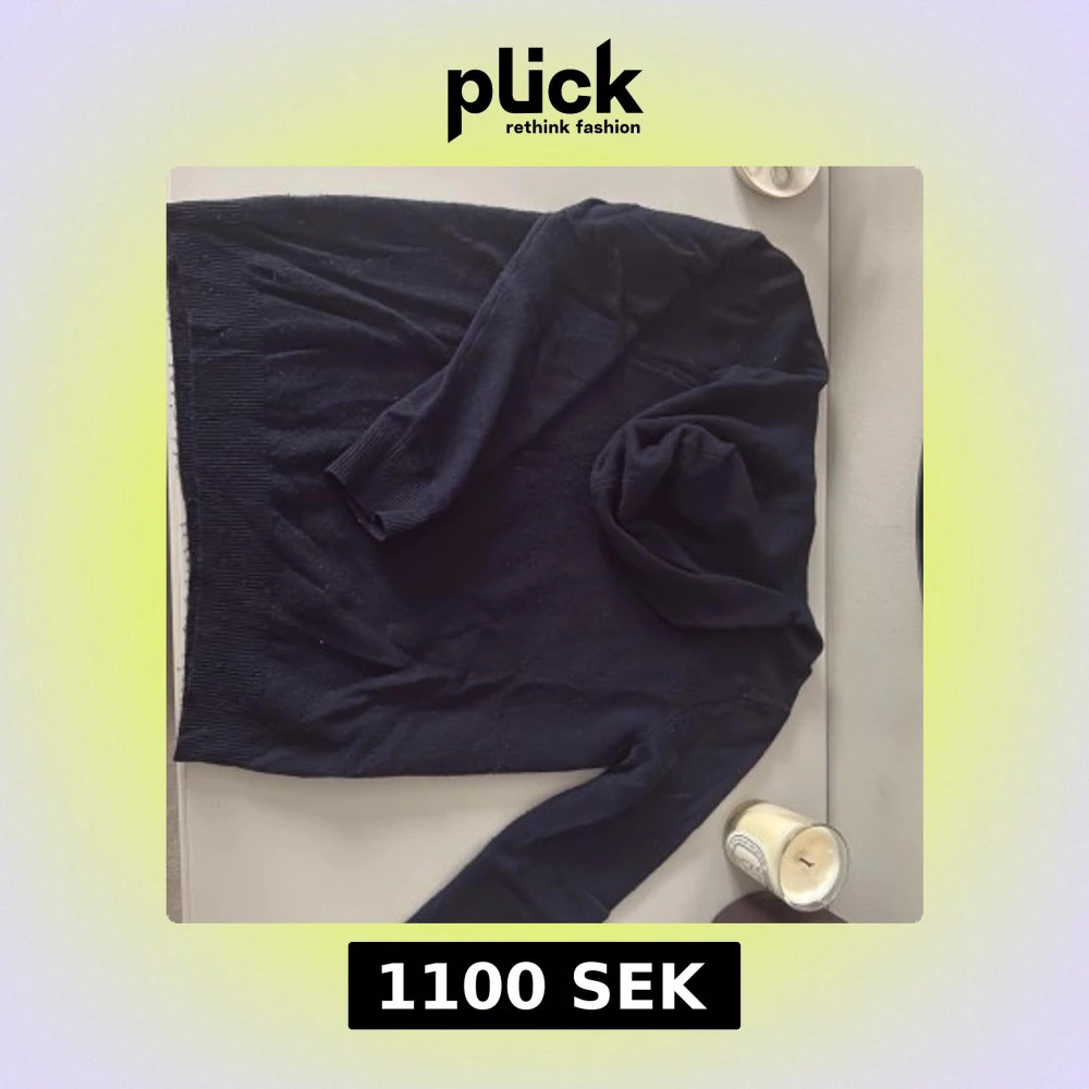 Säljer en mörkblå hoodie från Soft Goat i 100% kashmir. Tröjan har långa ärmar, ribbade muddar och en huva.