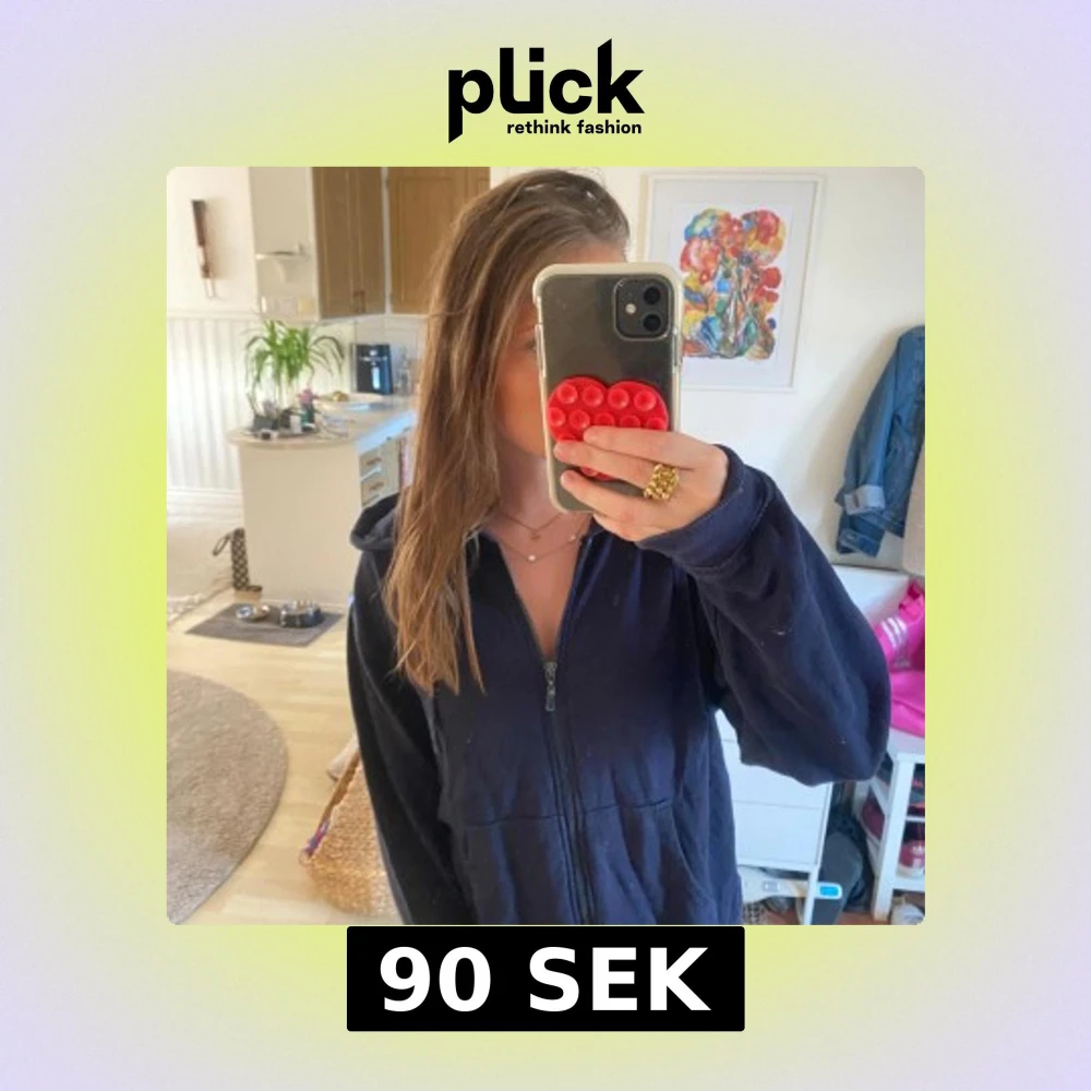 Mysig mörkblå hoodie med dragkedja framtill och huva. Tröjan har långa ärmar och en avslappnad passform, perfekt att slänga på sig när det är lite kyligt. Klassisk stil som funkar till det mesta och är superenkel att matcha.