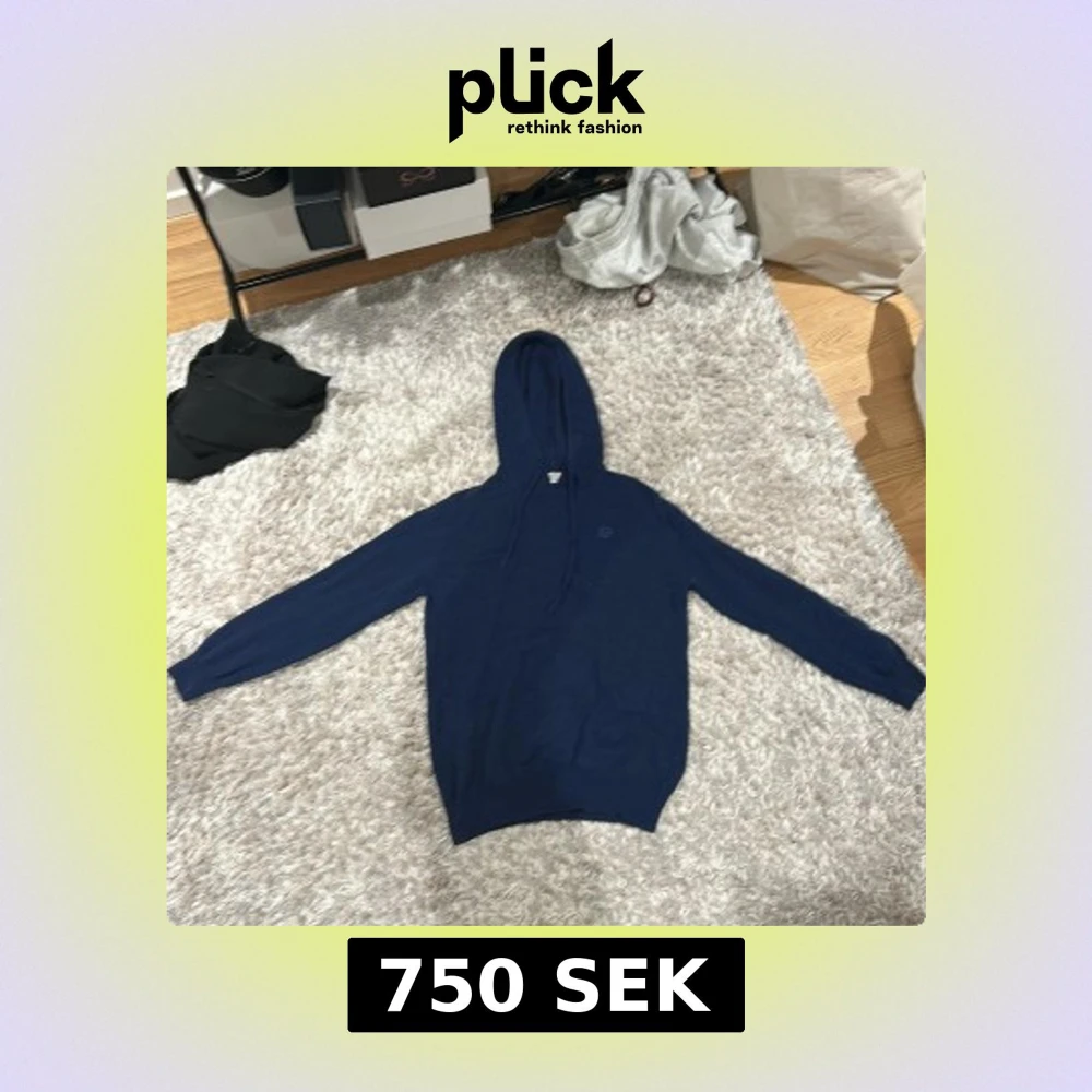 Snygg mörkblå hoodie med huva och snörning framtill. Tröjan har långa ärmar och ribbade muddar vid ärmslut och nederkant. Perfekt för chill dagar och enkel att matcha med jeans eller joggers. Diskret logga på bröstet för en clean look.