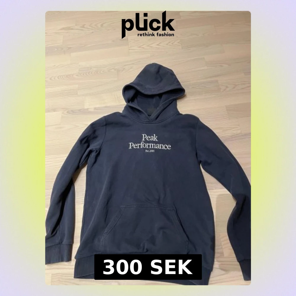 Snygg mörkblå hoodie från Peak Performance med vit logotyp på bröstet. Tröjan har huva, lång ärm och en klassisk känguruficka framtill. Mjuk bomullskvalitet och ribbade muddar vid ärmslut och nederkant. Perfekt för chill eller streetwear. Vid funderingar skriv. Pris kan diskuteras kom med förskag.