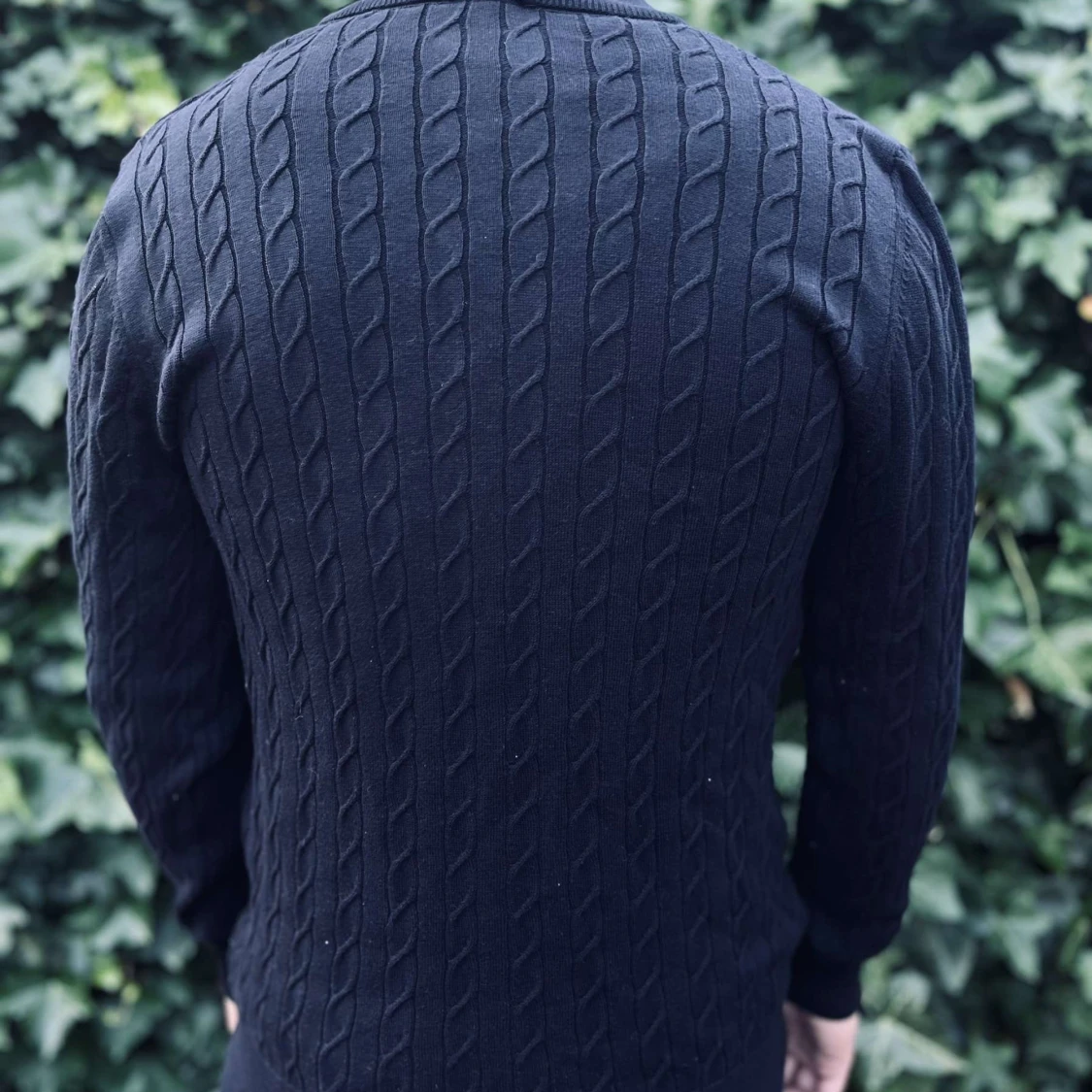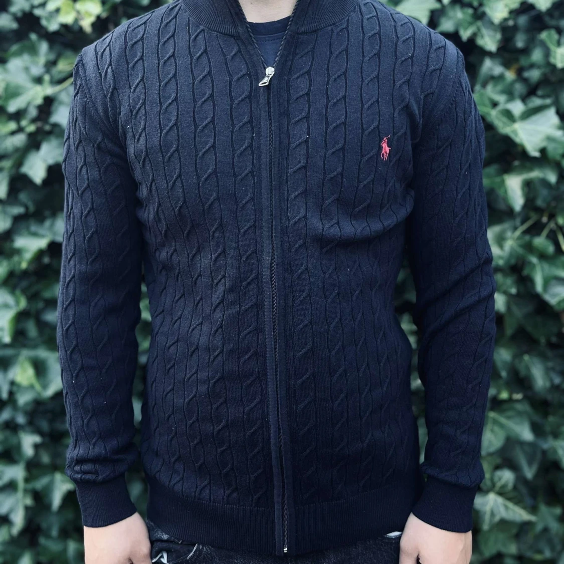 Snygg mörkblå kabelstickad kofta från Polo Ralph Lauren med dragkedja framtill och klassisk röd logga på bröstet. Tröjan har ribbade muddar och lång ärm, perfekt för lager-på-lager. Passformen är normal och materialet känns mjukt och bekvämt. Nypris: 3145kr GORILLAPRIZE:1680kr Skick:10/10 oöppnad KVITTO MEDKOMMER
