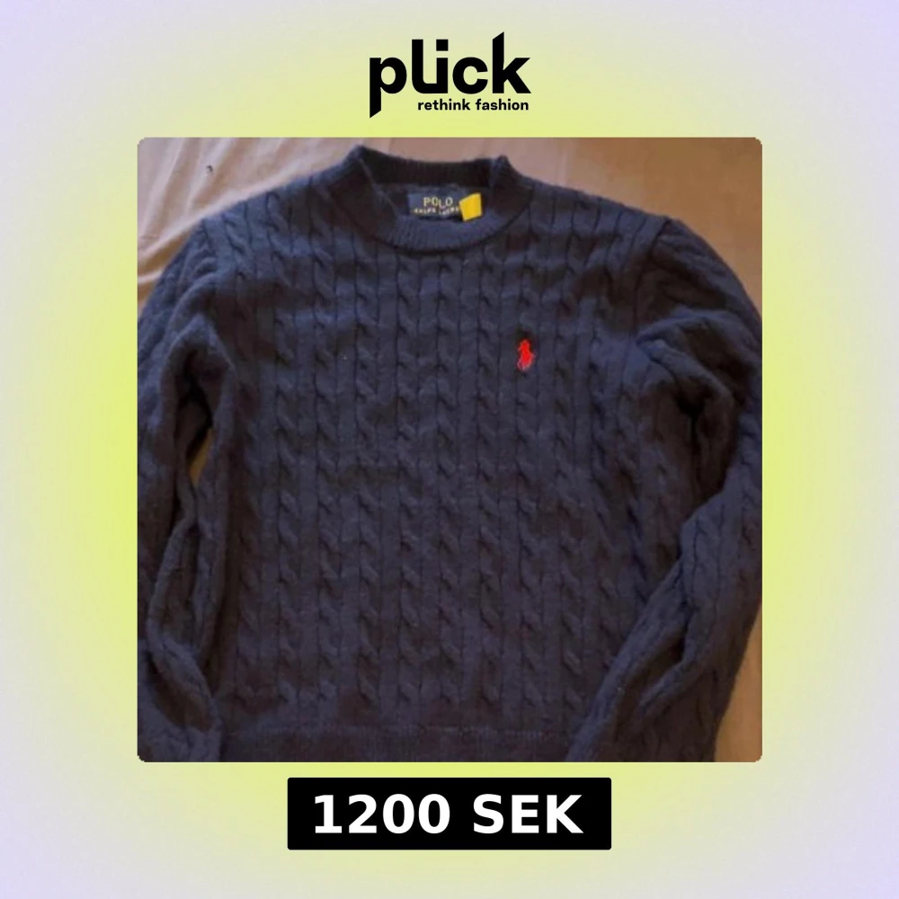 Säljer en stilren mörkblå kabelstickad tröja från Polo Ralph Lauren för den hade blivit mindre i tvätten så då blev den till XS. Tröjan har en klassisk design med rund hals och det ikoniska röda logotypbroderiet på bröstet. Perfekt för en elegant och avslappnad look.
