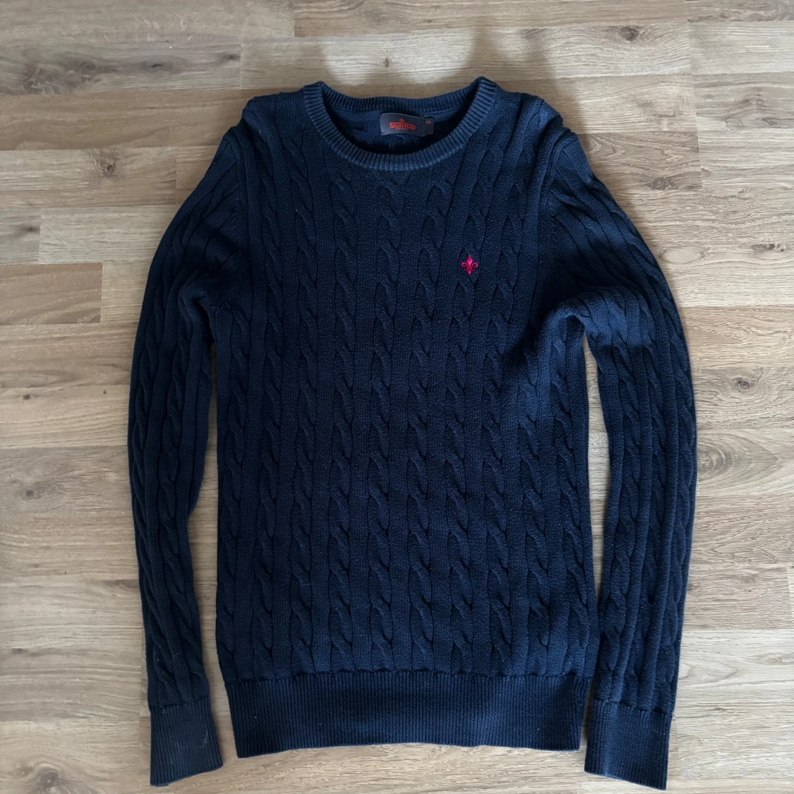 Säljer en stilren mörkblå kabelstickad tröja från Morris. Nypris 899kr. Hör av er vid intresse och frågor.