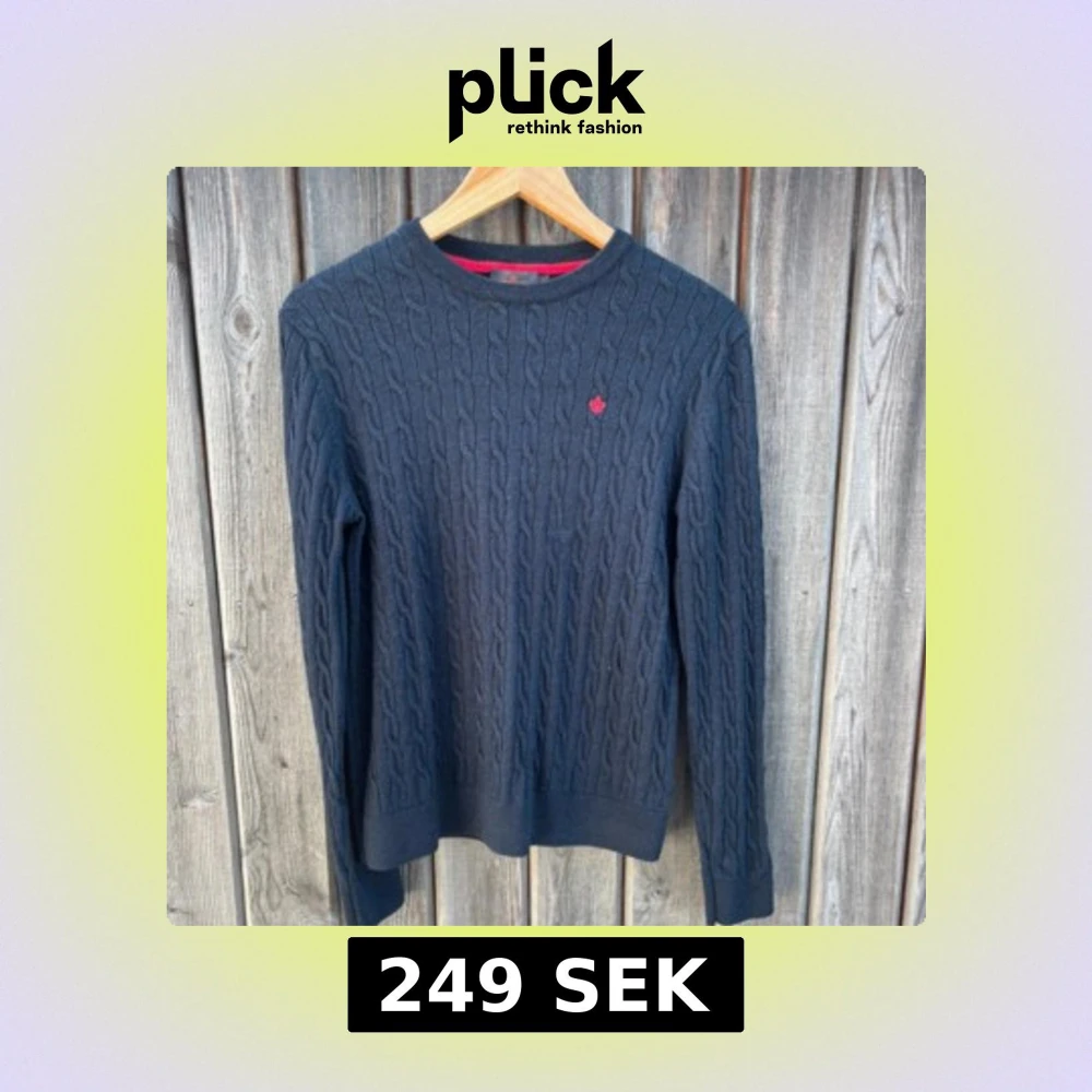 Mörkblå kabelstickad tröja från Morris | Storlek L har krympt passar mer XS/S | Har en liten defekt på framsidan annars fin | Hör av dig vid funderingar