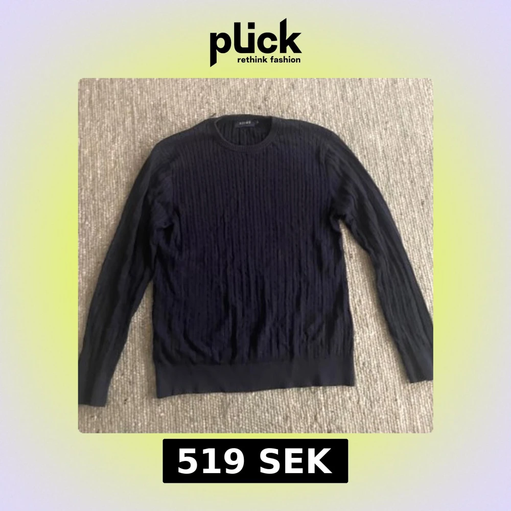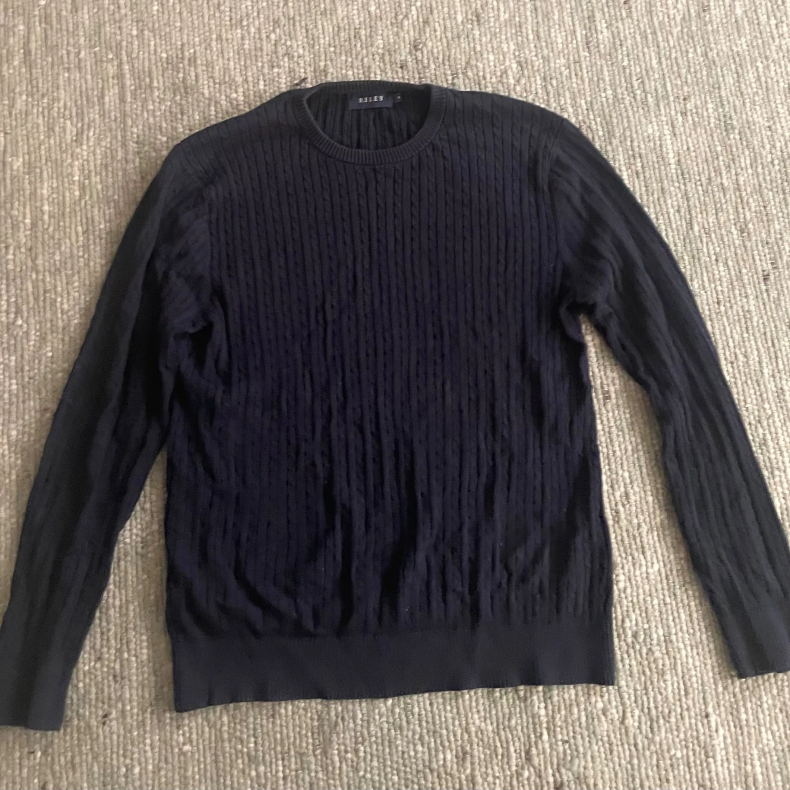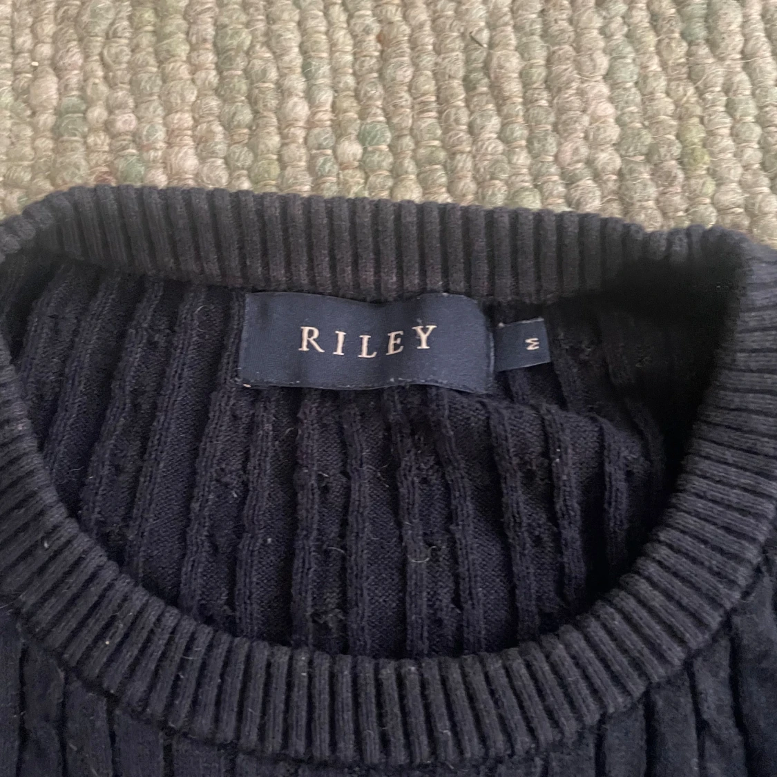 Kabelstickad mörkblå tröja från Riley med rund halsringning och ribbade muddar. Tröjan har lång ärm och klassisk passform, perfekt för lager på lager under kyliga dagar. Snygg struktur i materialet som ger en stilren look. NYPRIS: 900kr