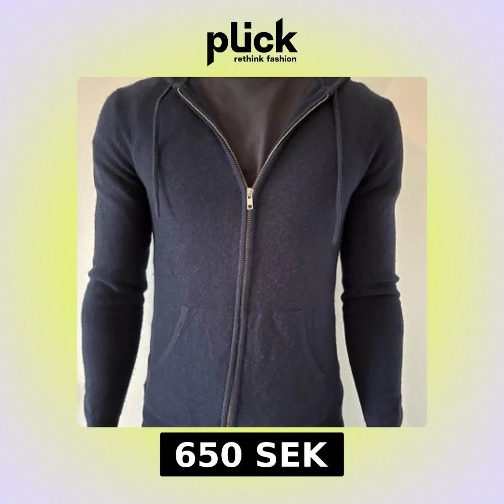Säljer en stilren mörkblå hoodie med dragkedja och huva. Tröjan har långa ärmar och praktiska fickor framtill. Perfekt för en avslappnad look.