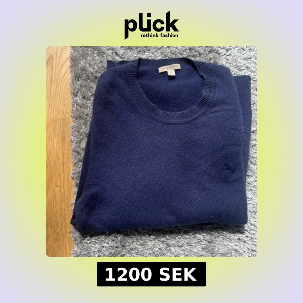 Säljer en stilren mörkblå rundhalsad tröja från Burberry i mjuk kashmir. Tröjan har diskret broderad logga på bröstet och långa ärmar. Perfekt för dig som gillar klassisk och lyxig stil. Pris kan såklart diskuteras vid snabba och smidiga affärer