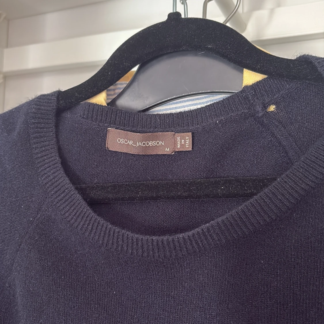 Mjuk och stilren mörkblå tröja från Oscar Jacobson i kashmir. Klassisk rund halsringning och långa ärmar, perfekt för lager-på-lager under kyliga dagar. Enkel design som funkar till allt och ger en clean look.