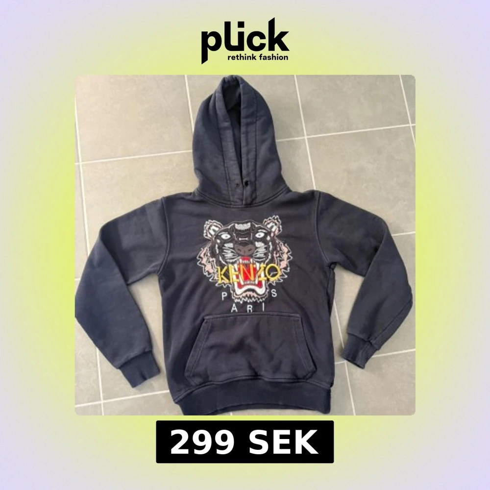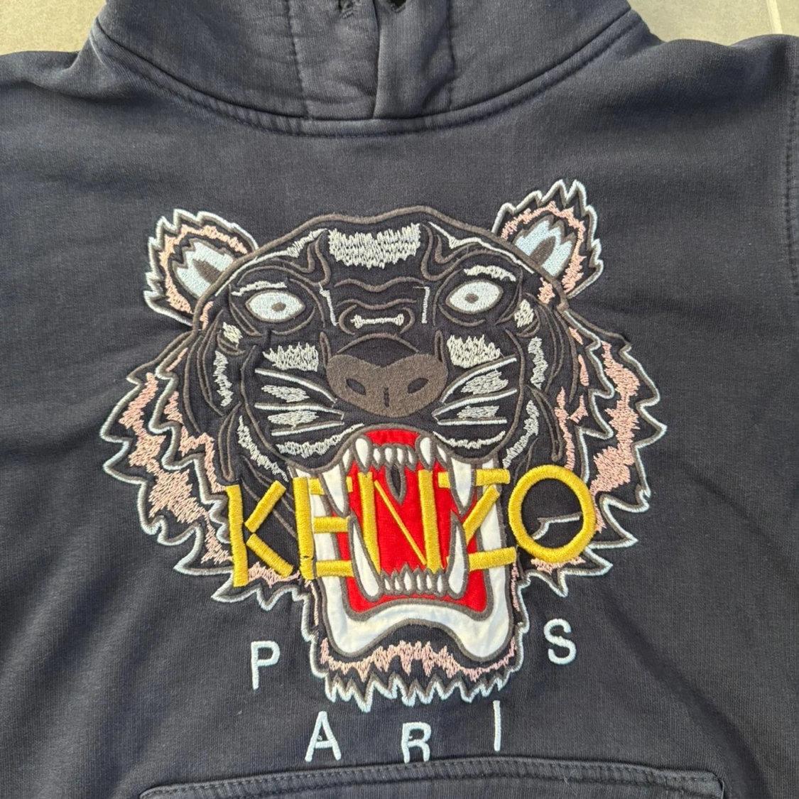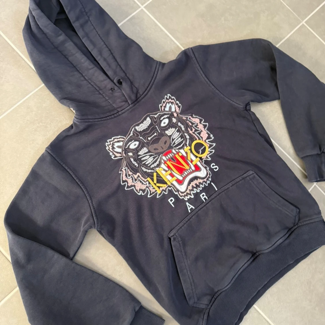 Mörkblå hoodie från Kenzo med ikonisk broderad tiger och färgglad logga på bröstet. Tröjan har huva, magficka och ribbade muddar. Perfekt för dig som vill sticka ut med en streetstyle-look.