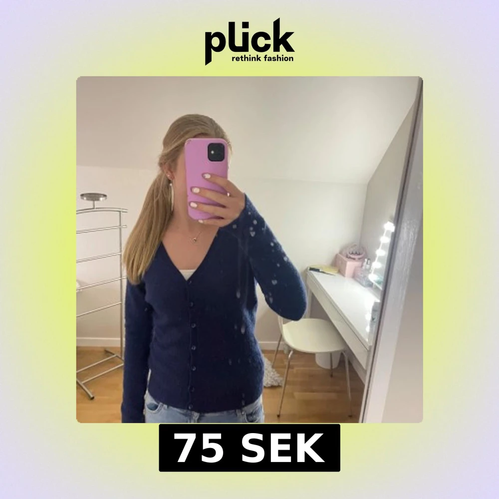 Mysig mörkblå kofta från Last Woman med v-ringning och knappar hela vägen. Långärmad och väldigt mjuk! I storlek S/M. Skriv om ni har några frågor🩷Förlåt för smutsig spegel!