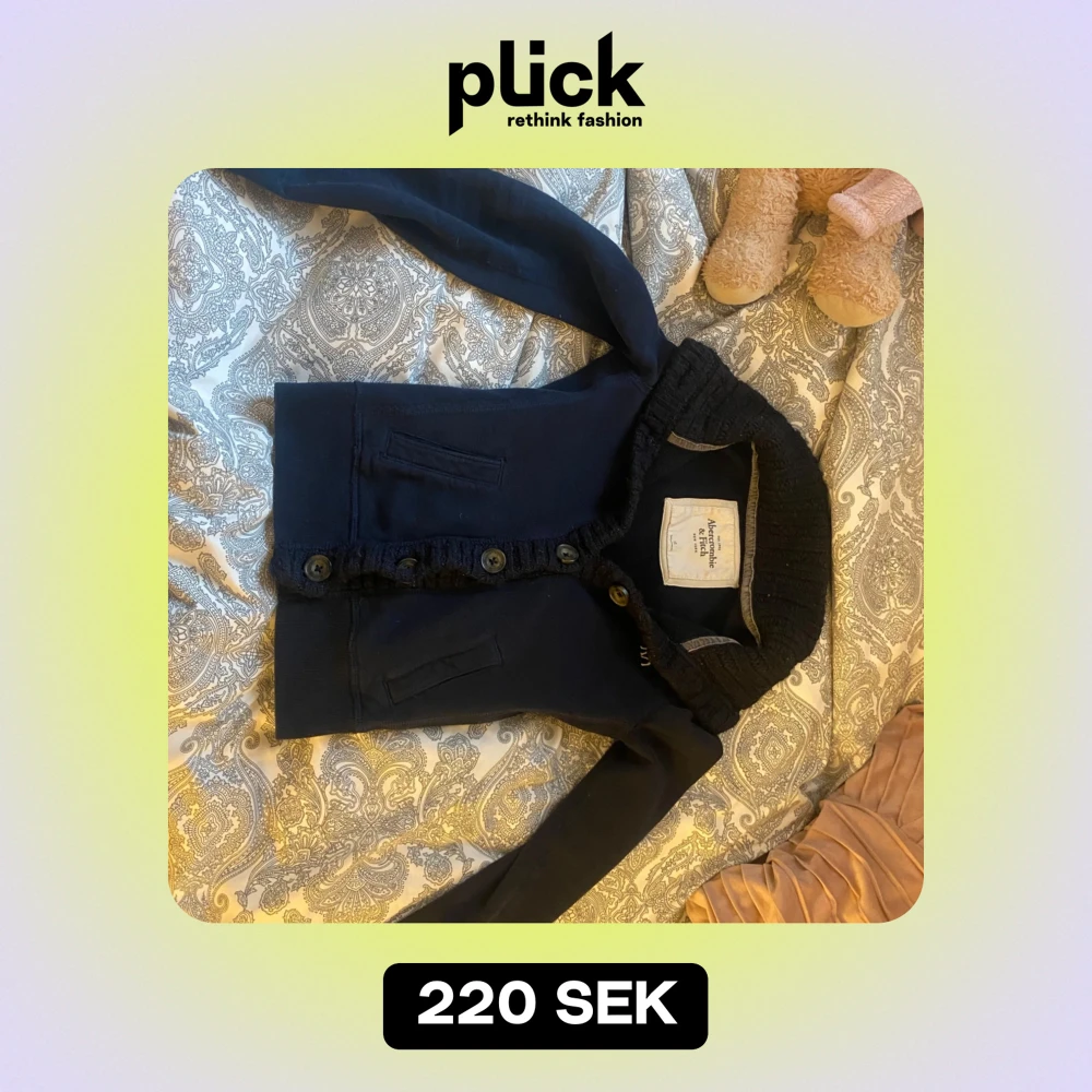 Säljer en snygg mörkblå kofta från Abercrombie & Fitch i storlek XS. Den har långa ärmar och knappar framtill. Perfekt för höst och vår, och den är i mycket bra skick. Passar både till vardags och lite finare tillfällen. Knapphålen har röjts ut lite så den knäppa upp ganska lätt men men.