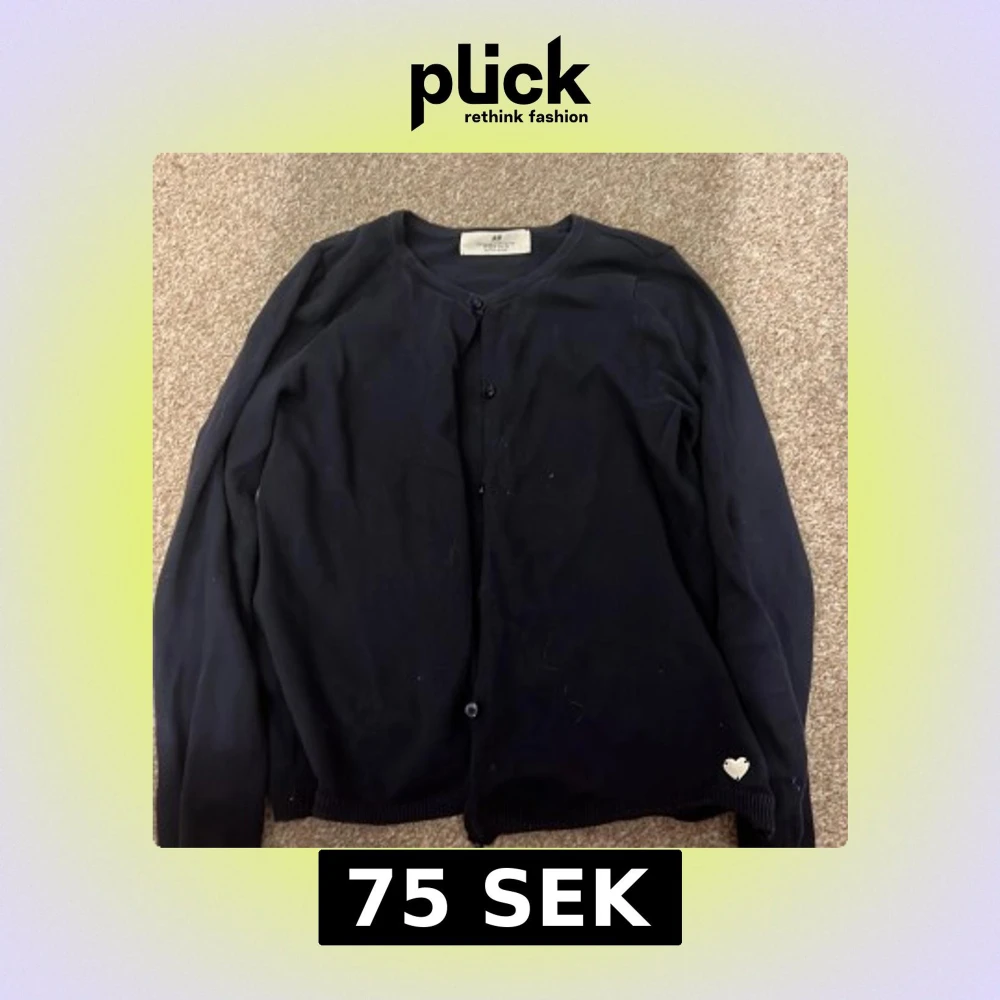 Säljer en stilren mörkblå kofta från H&M med knappar framtill. Koftan har långa ärmar och en söt hjärtdetalj vid nederkanten. Skriv först om ni skulle vilja köpa!💕
