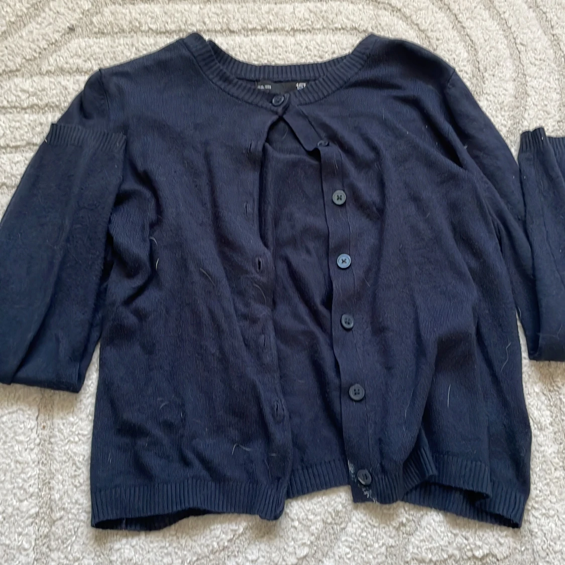 Mörkblå kofta från lager 157 i storlek M. Klassisk rund halsringning, knäppning framtill med matchande knappar och ribbade muddar. Perfekt att slänga över en t-shirt eller linne för en chill look.