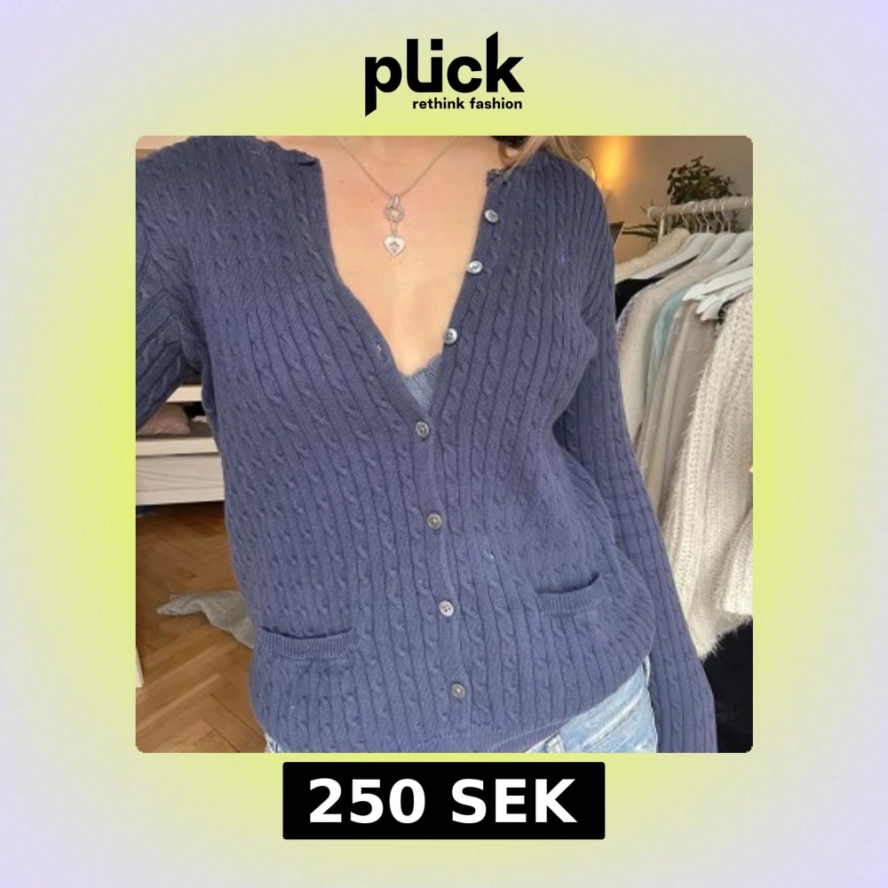 Säljer denna snygga mörkblå kofta från Ralph Lauren med kabelstickat mönster. Koftan har knappar och små fickor framtill samt loggan på bröstet💙Enda tecknet på användning är att den släppt lite där bak vilket går att laga väldigt lätt! 🫶🪽