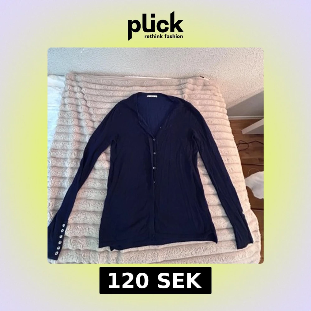 Mörkblå tunnstickad kofta från Zara i storlek S. Långärmad modell med silverfärgade knappar framtill och längs ärmsluten. Enkel och stilren design som är lätt att matcha. Perfekt för lager-på-lager och chillare dagar.