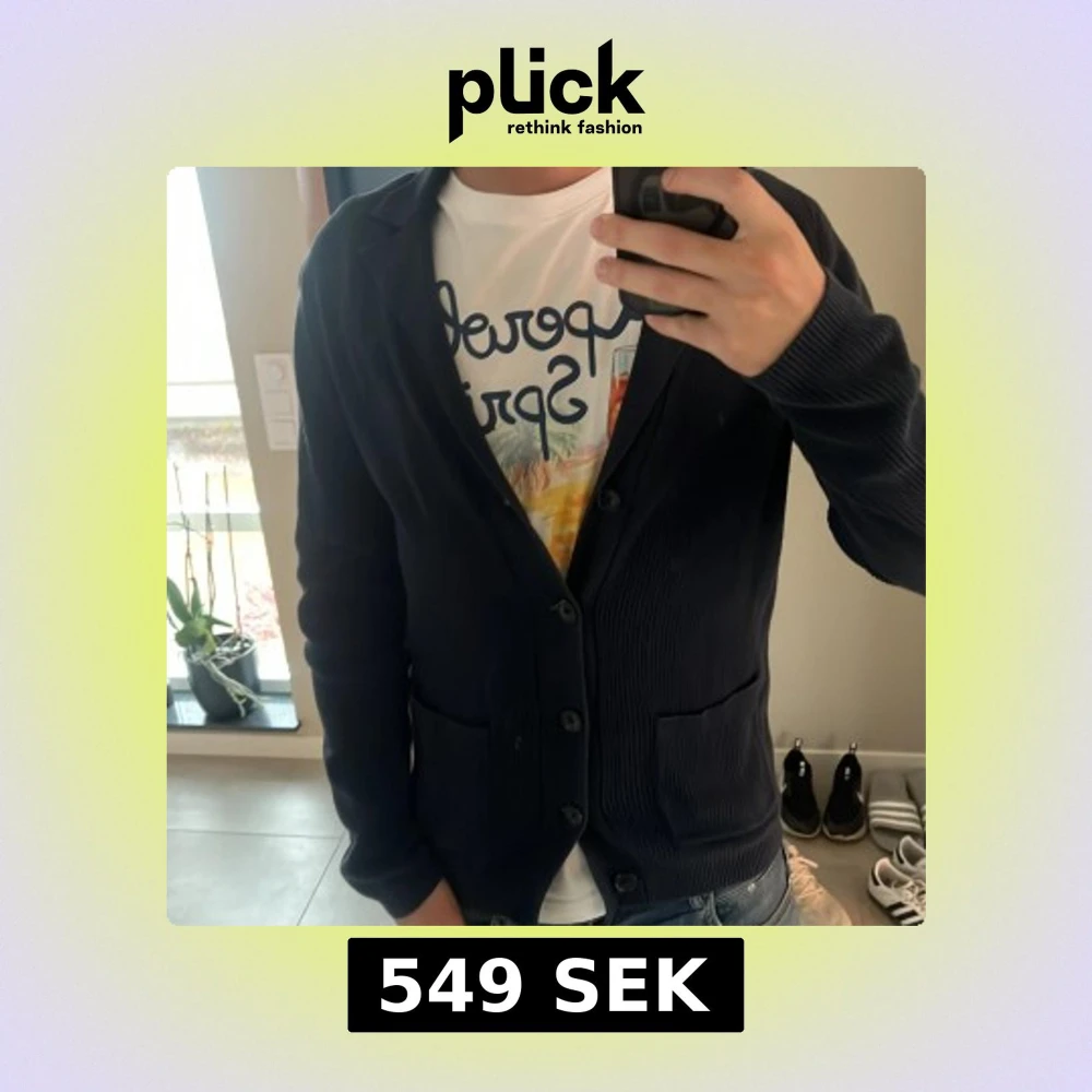 Säljer en stilren mörkblå kofta med knappar framtill och två praktiska fickor. Koftan har långärmad design och är tillverkad i ett mjukt, ribbat material som ger en snygg struktur. Perfekt för lager-på-lager och passar till jeans eller chinos. Mitt pris 549kr