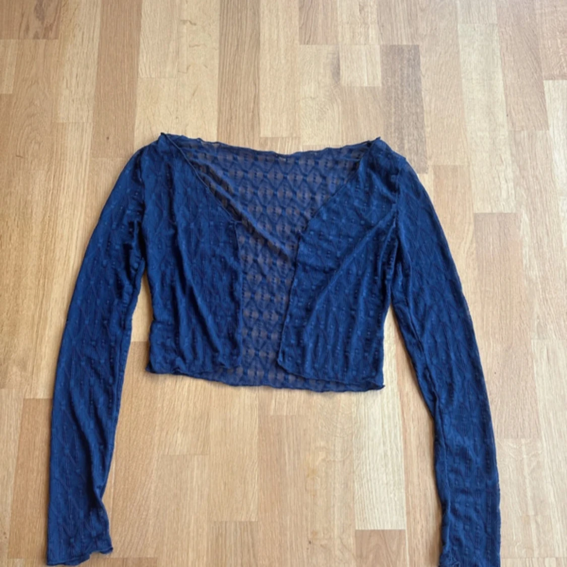 Säljer en mörkblå kofta från shein. Den är aldrig använd. Koftan är tunn och genomskinlig. Man kan knäppa en knappt men även ha den uppknäppt.