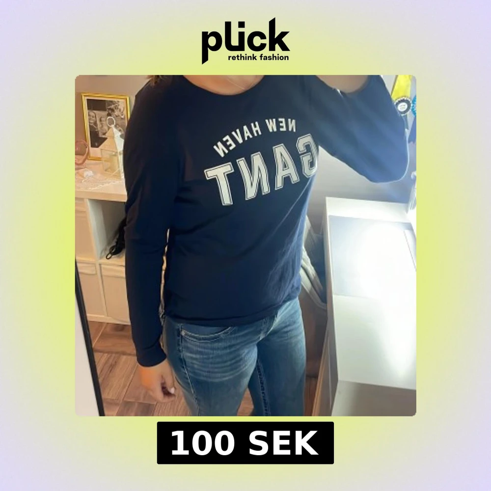 Snygg mörkblå långärmad tröja från GANT i storlek XXL med vit tryckt text 'NEW HAVEN GANT' på bröstet. Rund hals inga tecken på slitage
