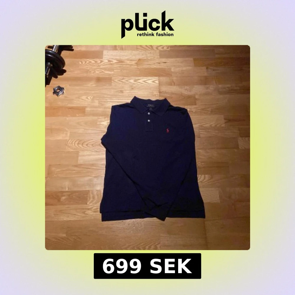 Säljer en mörkblå långärmad pikétröja från Polo Ralph Lauren. Står large men passar s som bäst
