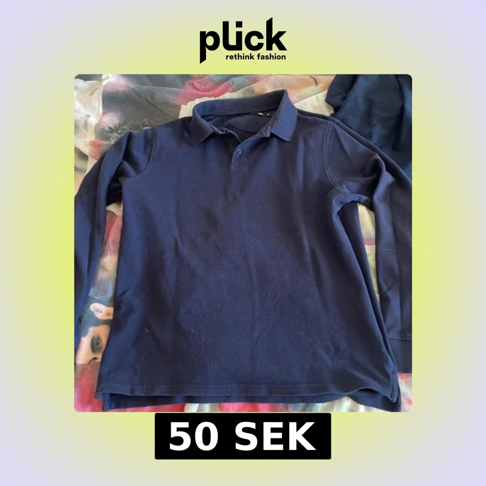 Säljer en stilren mörkblå långärmad pikétröja som är perfekt för sommaren!