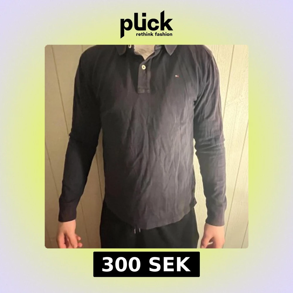 Säljer en klassisk mörkblå långärmad pikétröja från Tommy Hilfiger.