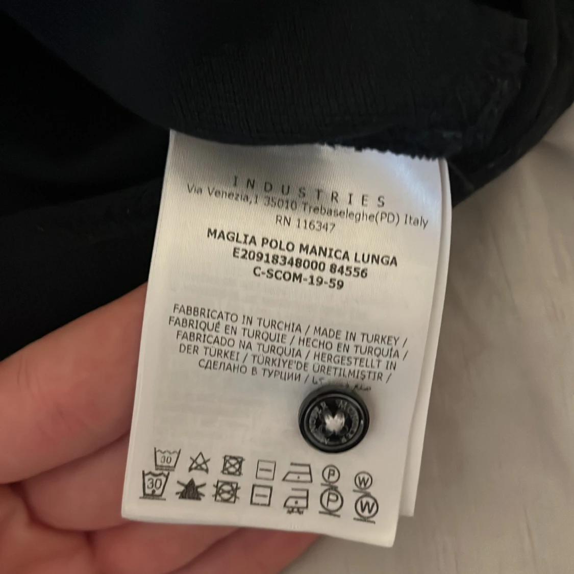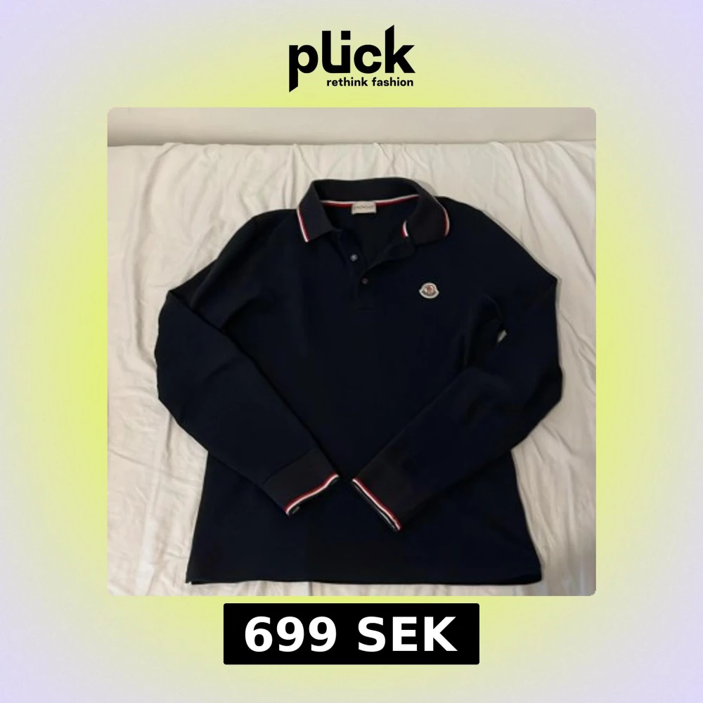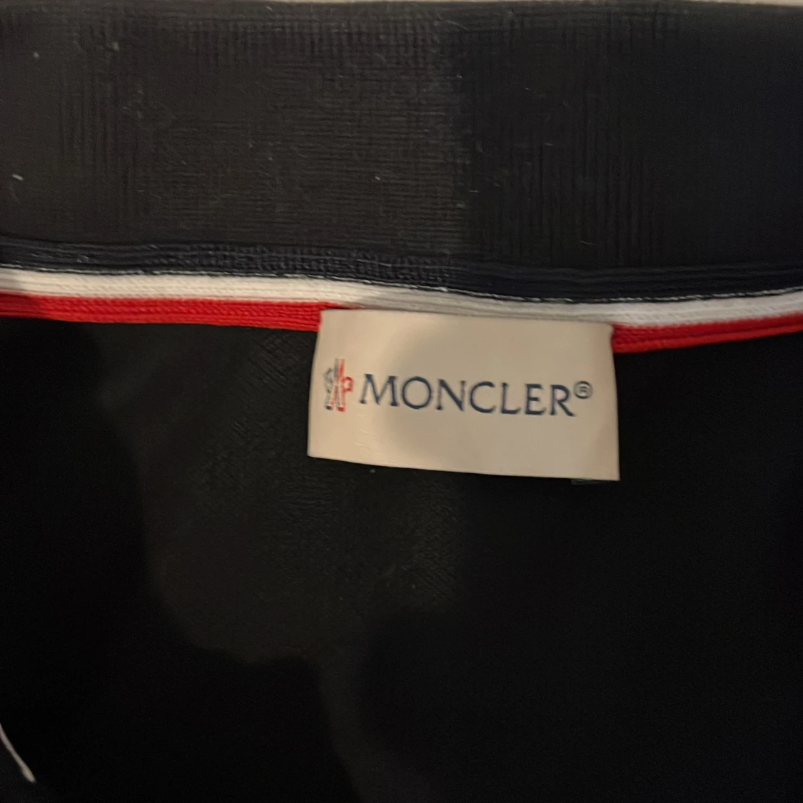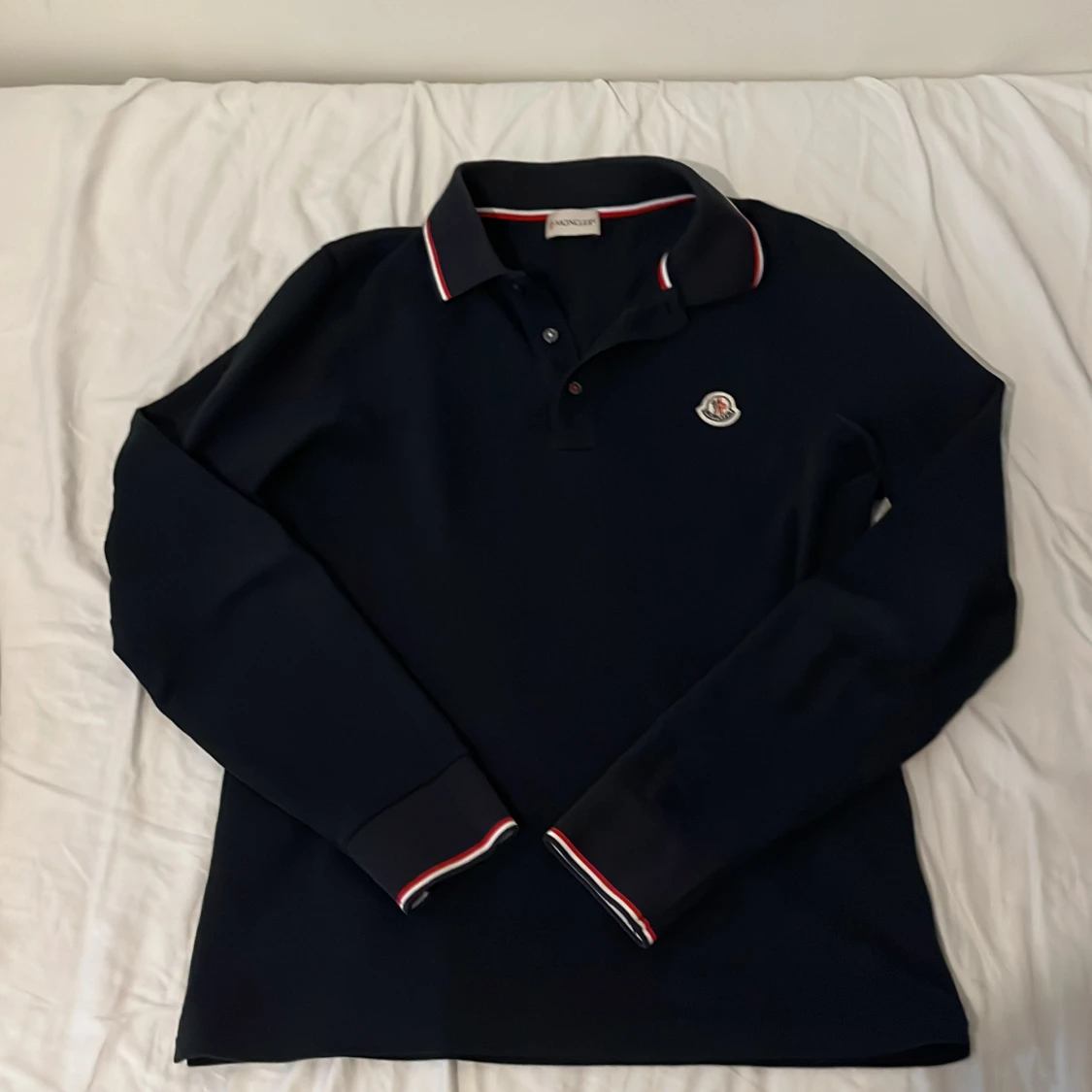 Snygg mörkblå långärmad pikétröja från Moncler med klassisk krage och knäppning framtill. Tröjan har Moncler-logga på bröstet och detaljer i rött och vitt på krage och ärmslut. Tillverkad i bomull för en skön känsla.
