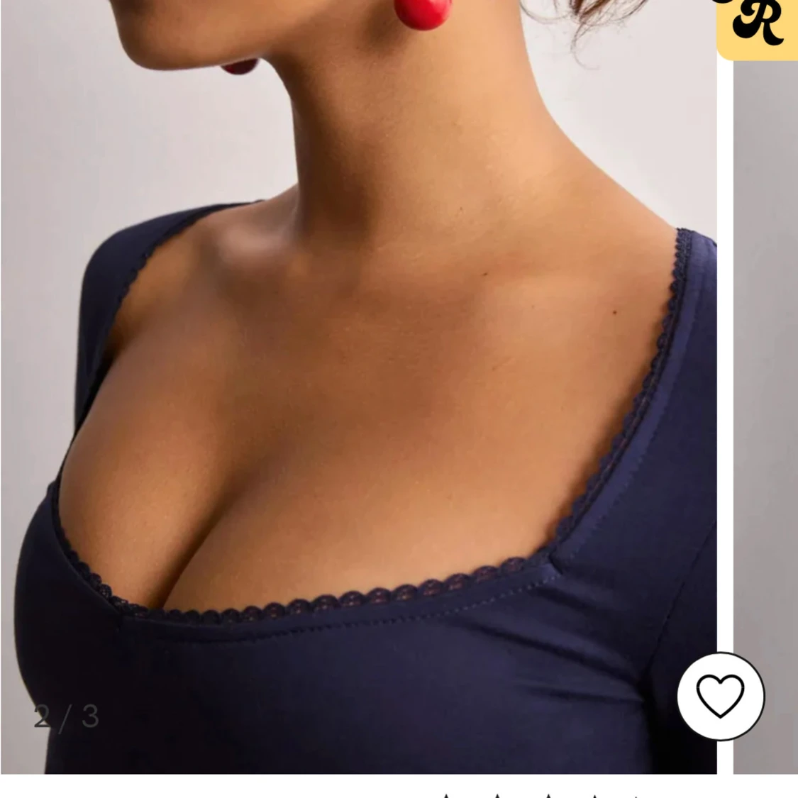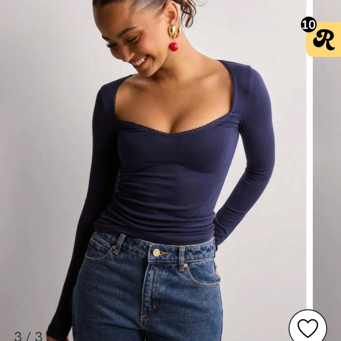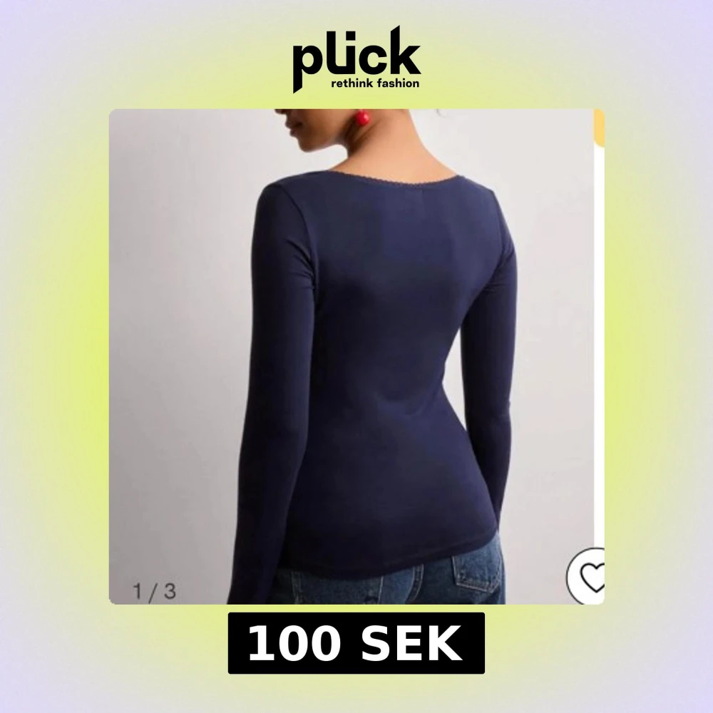 Snygg mörkblå topp med lång ärm och en elegant fyrkantig urringning med spetsdetaljer. Perfekt för en stilren look.