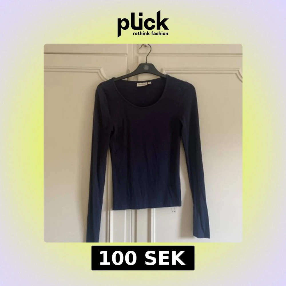 Säljer en enkel tunn mörkblå långärmad tröja från Kappahl. Modellen är figurnära med rund halsringning och mjukt bomullsmaterial. Perfekt att ha till en kjol eller jeans. Använd fåtal gånger med inga defekter. Skriv för frågor, kan gå ner i pris💗