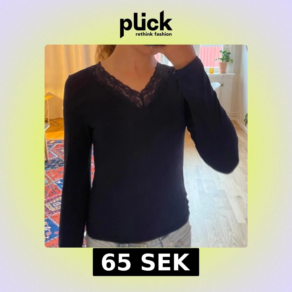 Mörkblå långärmad topp med spetskrage från Gina Tricot