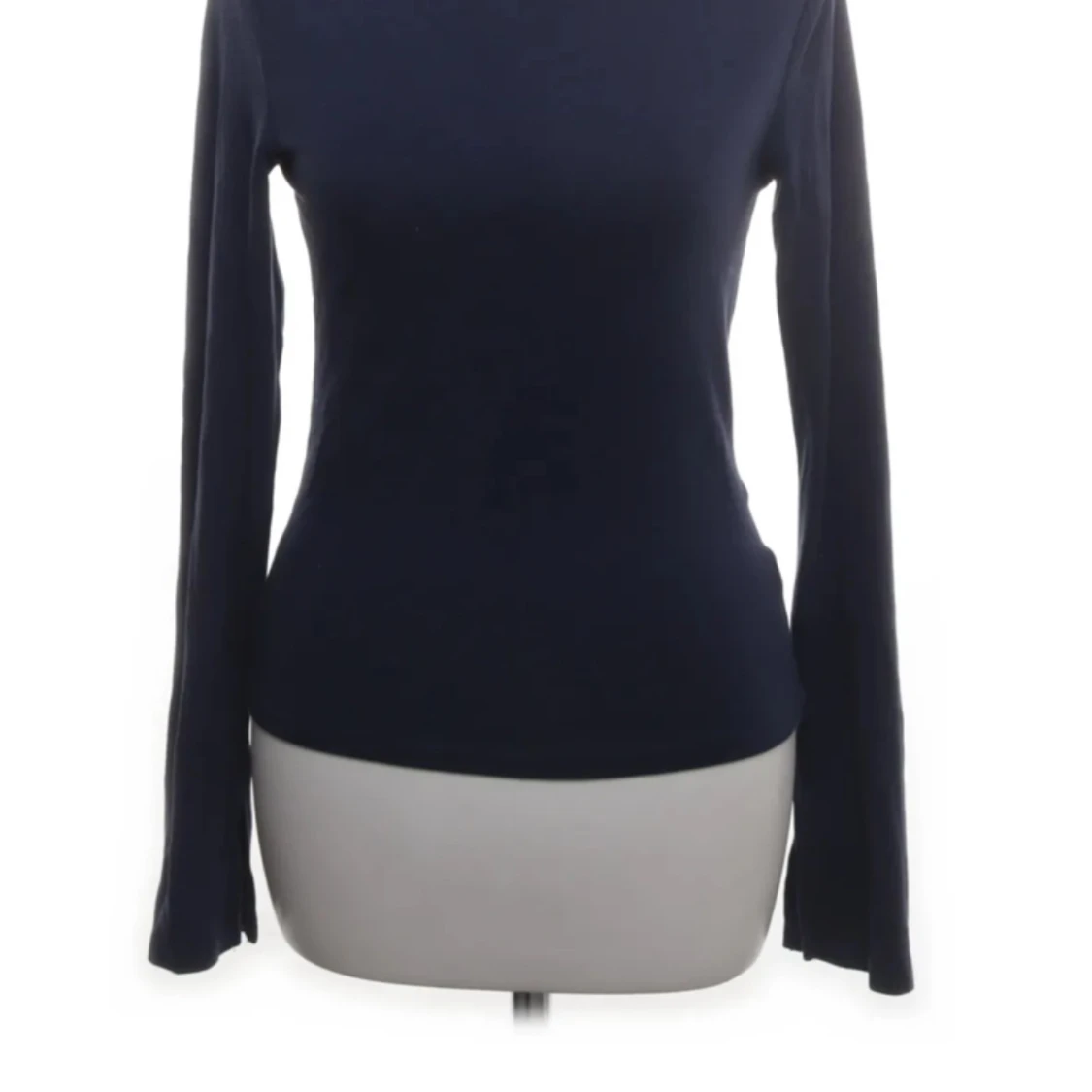 Säljer en mörkblå långärmad tröja från gina tricot. Tröjan har en tajt passform och är tillverkad i mjukt bomullsmaterial. Perfekt till jeans eller tights för en clean look. Armarna går även ut lite i slutet. Använd 2 gånger