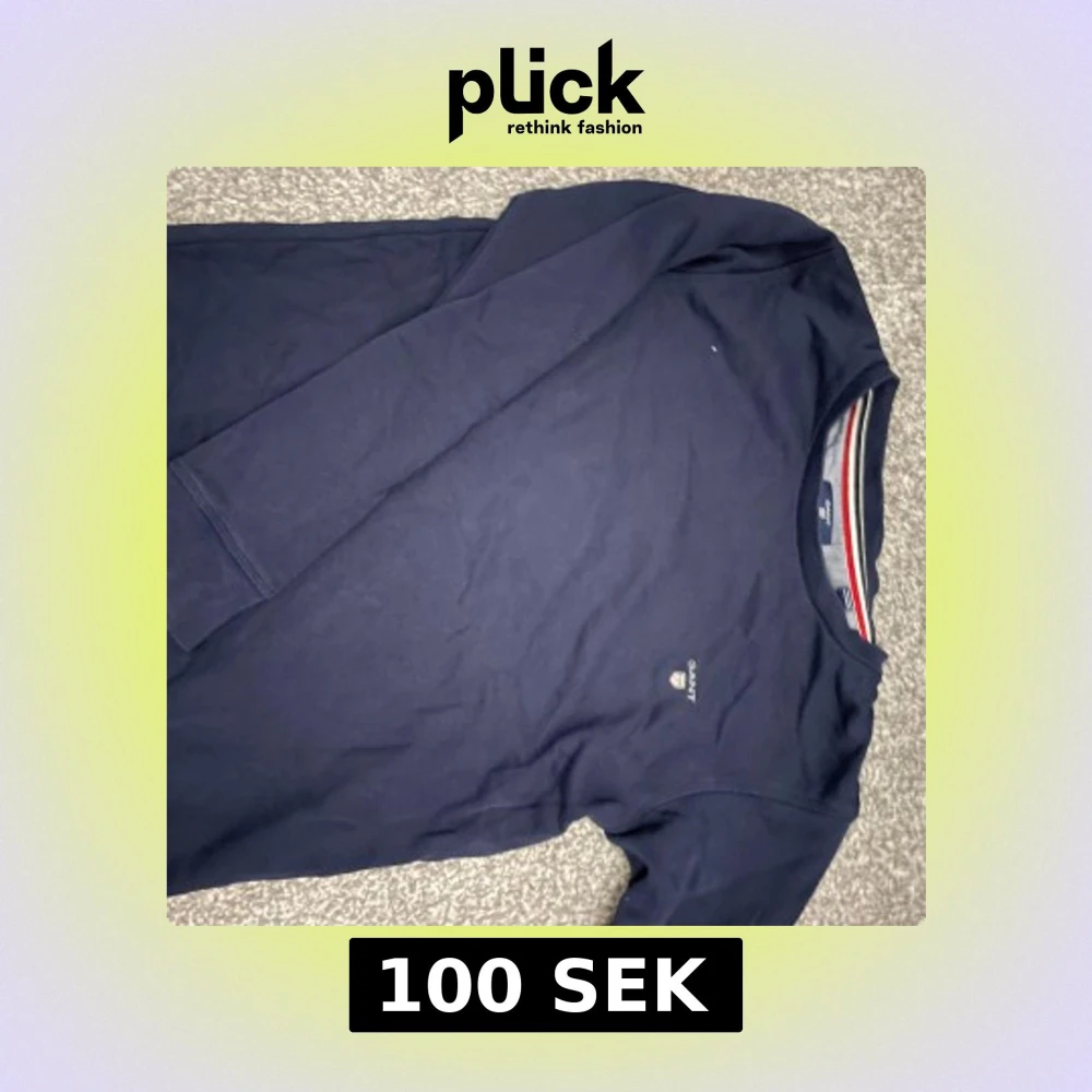 Säljer en stilren mörkblå långärmad tröja från Gant med broderad logga på bröstet. Perfekt för en avslappnad och snygg look. Tröjan har en klassisk rund halsringning och är tillverkad i mjukt material.