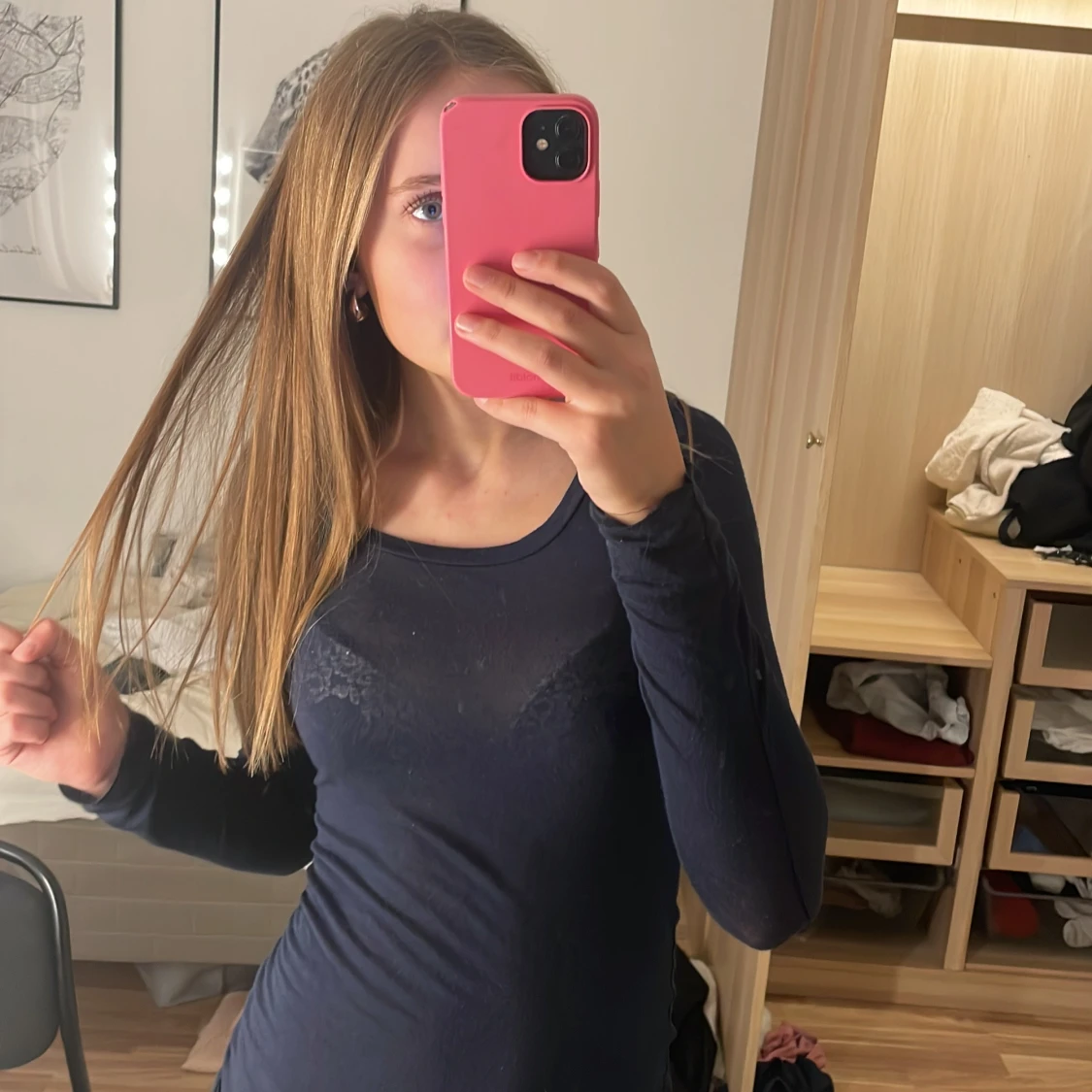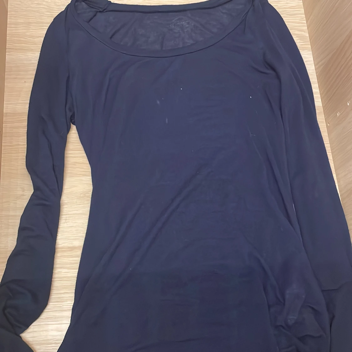 Säljer en tunn och mjuk mörkblå långärmad tröja från Intimissimi. Tröjan har rund halsringning och sitter tight mot kroppen, perfekt för lager-på-lager eller som enkel bas. Tröjan är lite genomskinlig och har lite små fläckar men som går att tvätta bort och kommer såklart tvätta innan jag postar grejer. Materialet är bomull med lite stretch för skön passform. Jag har nästan aldrig använt tröjan. Pris kan sänkas.