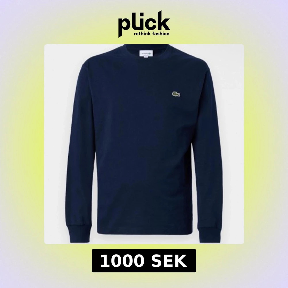 Säljer en stilren mörkblå långärmad tröja från Lacoste med det klassiska krokodilemblem på bröstet. Perfekt för en avslappnad och snygg look. Tröjan har en rund halsringning och ribbade muddar vid ärmslut.