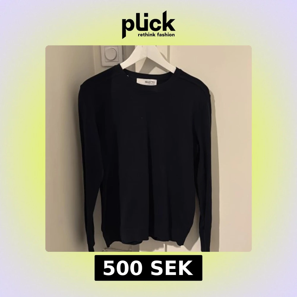 Snygg mörkblå långärmad tröja från Selected med rund hals och ribbad nederkant. Enkel och stilren design som funkar till jeans eller chinos. Tillverkad i mjuk bomull som känns skön mot huden. Perfekt för dig som gillar minimalistisk stil.