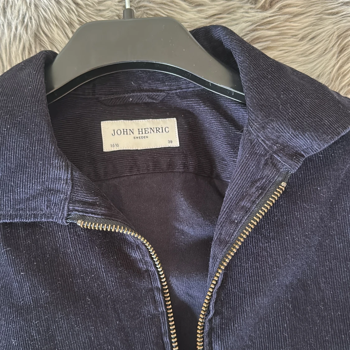 Snygg mörkblå overshirt från John Henric i mjuk manchester. Jackan har klassisk krage, hel dragkedja framtill och långa ärmar. Perfekt för lager-på-lager och ger en clean look till din outfit.