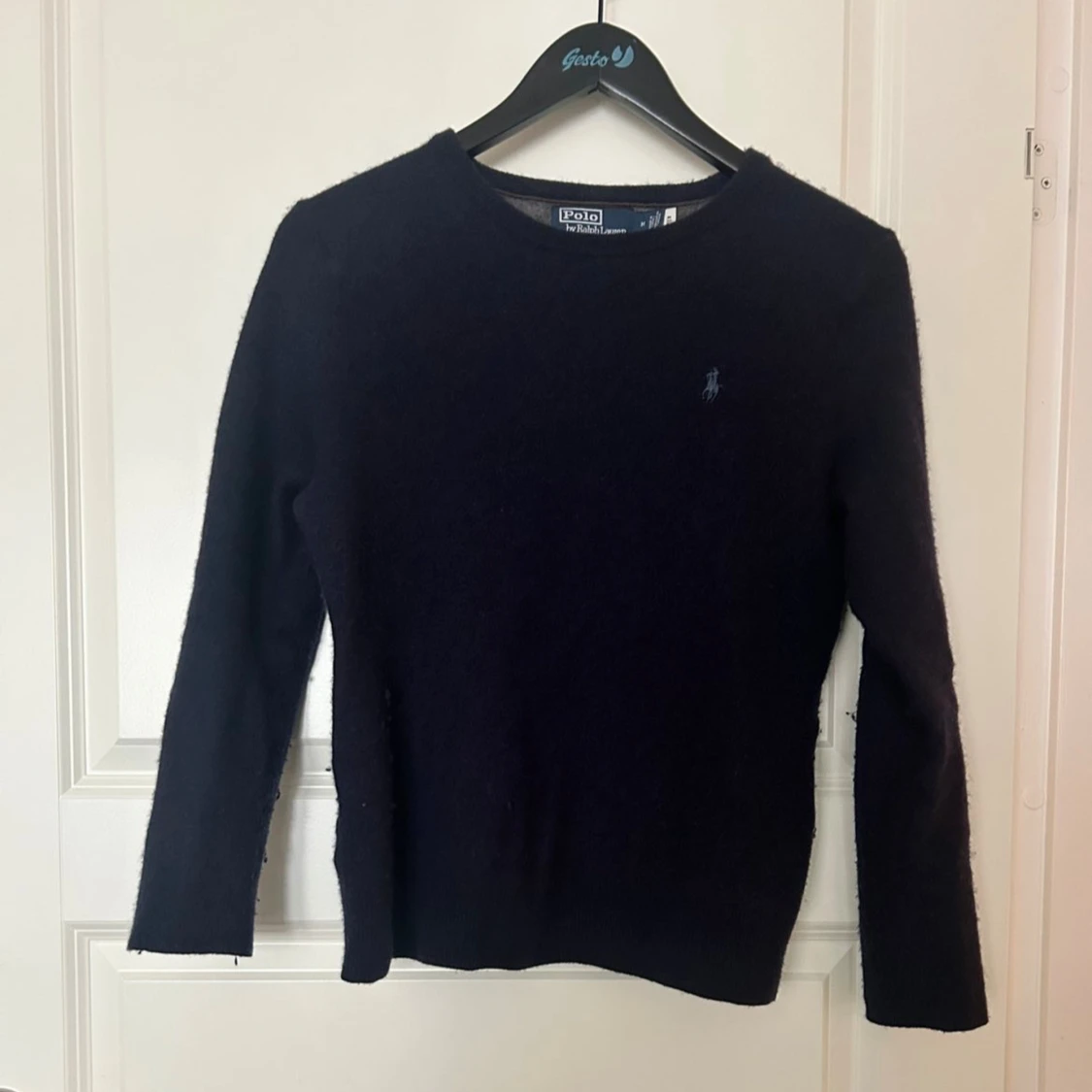 Säljer en mörkblå tröja från Ralph Lauren i merinoull. Storleken är M men sitter som XS då den har krympt i tvätten. Skriv om du har frågor och priser kan nog sänkas via snabb affär