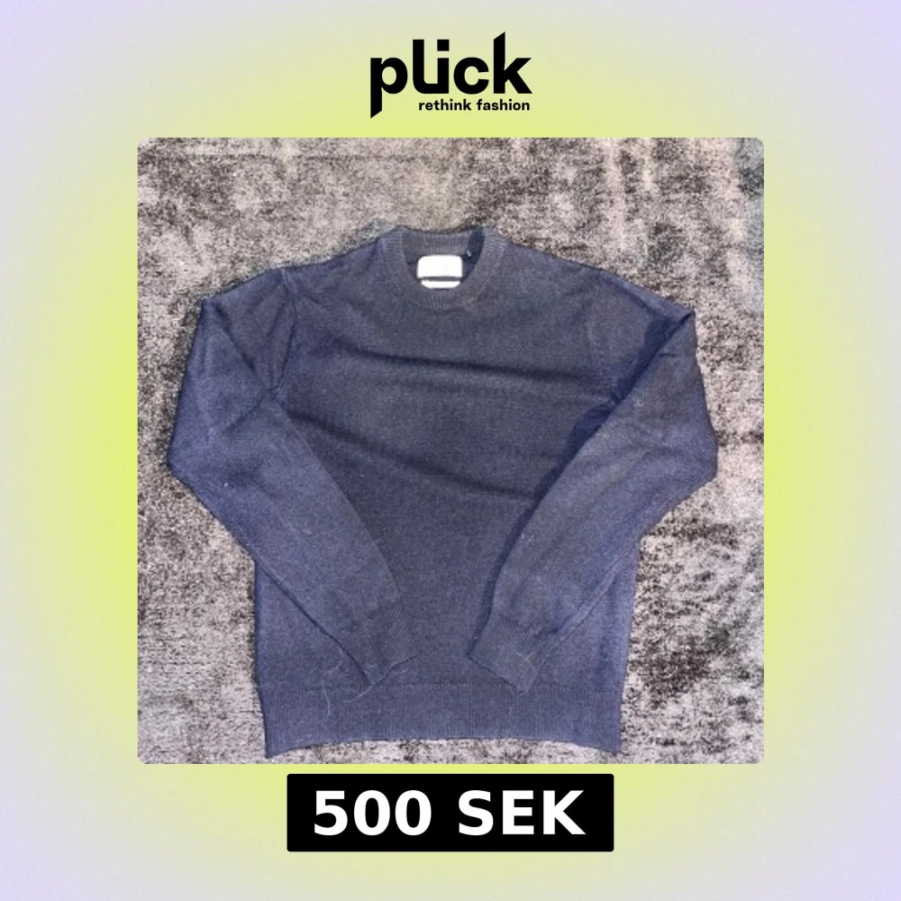 Tröjan är XS men passar mer som en S. Säljer en stilren mörkblå stickad tröja med rund hals och ribbade muddar vid ärmslut och nederkant. Tröjan har en klassisk passform och är perfekt för dig som gillar enkel och clean stil. Passar till jeans eller chinos för en chill look.