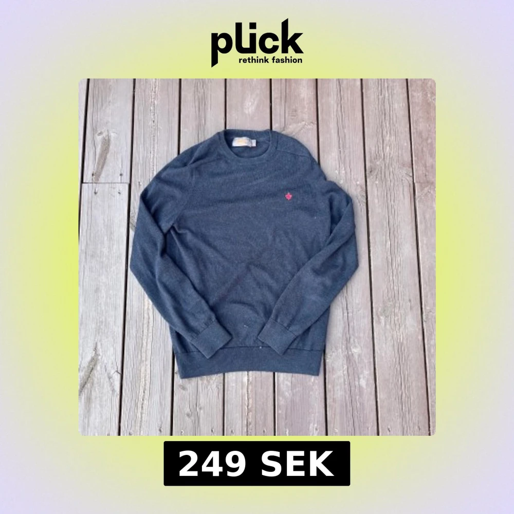 Mörkblå stickad tröja från Morris i 100% merinoull. Klassisk rund halsringning och ribbade muddar. Liten röd broderad detalj på bröstet. Perfekt för dig som gillar stilrena och tidlösa plagg.