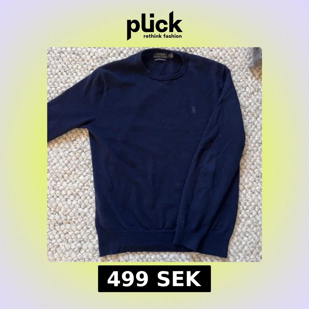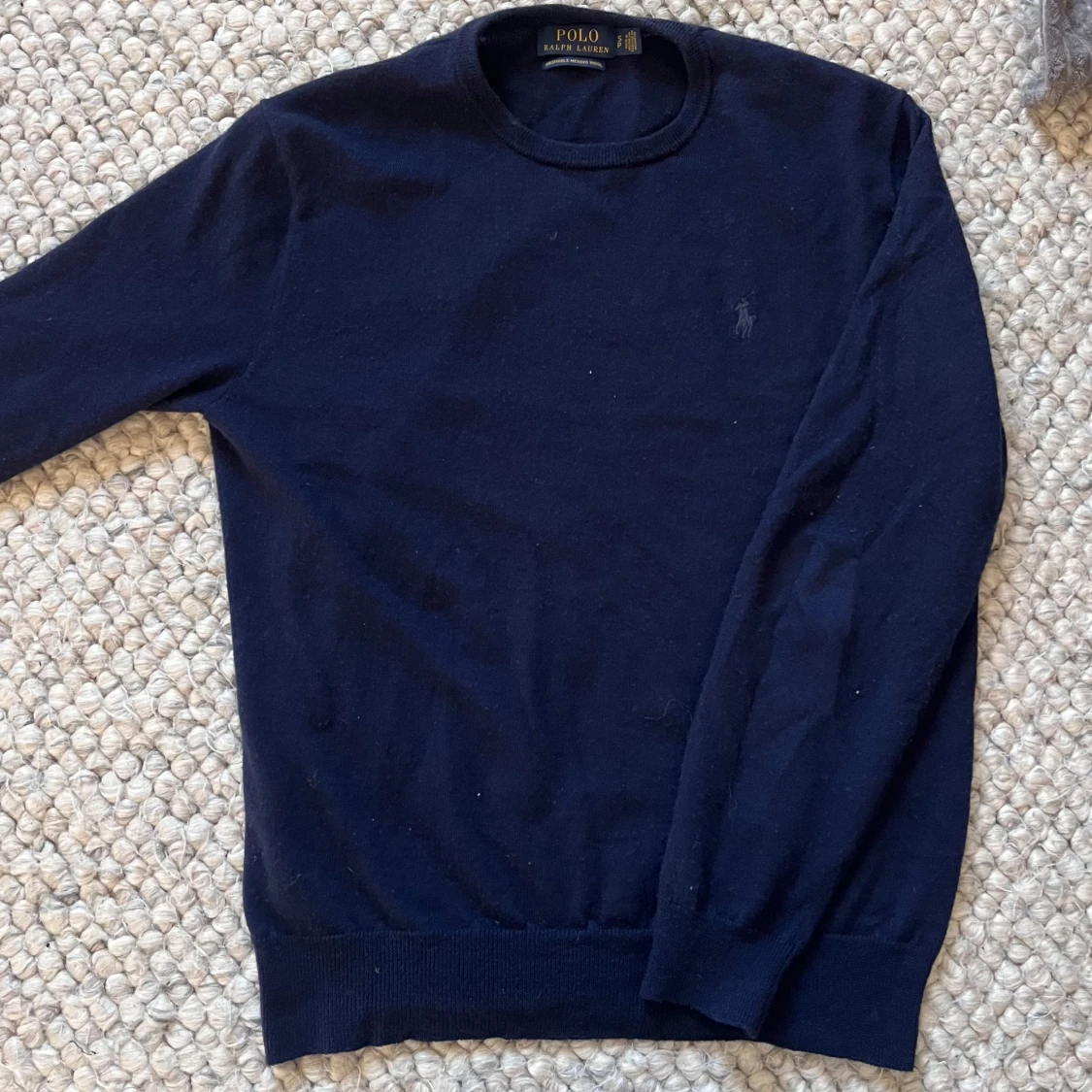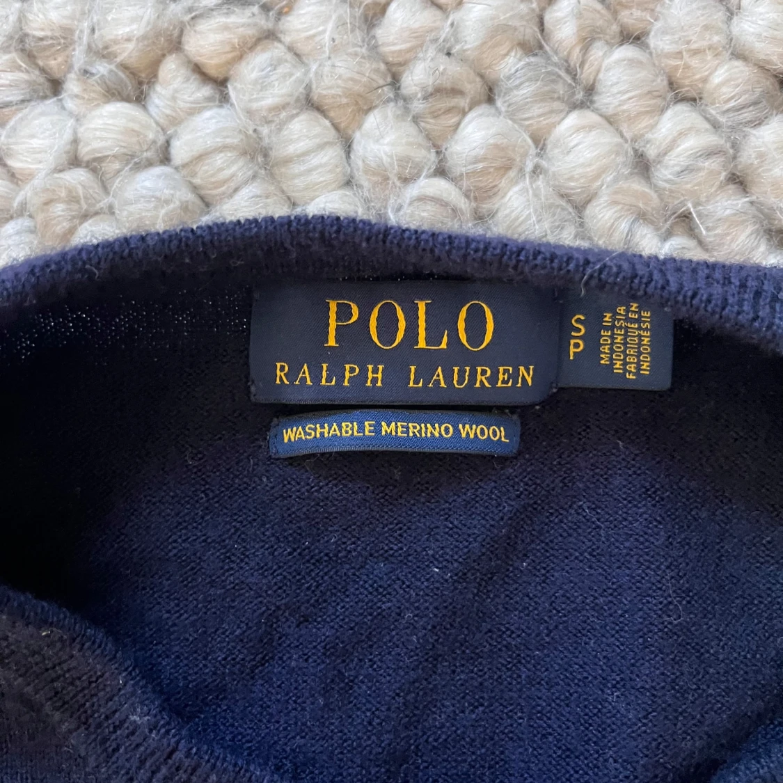 Mörkblå merinoullströjs från Polo Ralph Lauren som är i storlek S. 🙌🤩 Passformen är Slimfit ✅