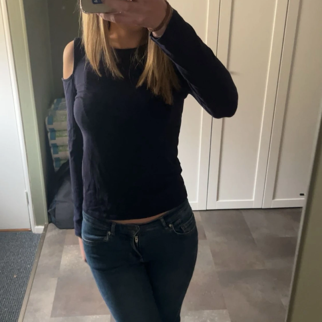Mörkblå offshoulder långärmad topp